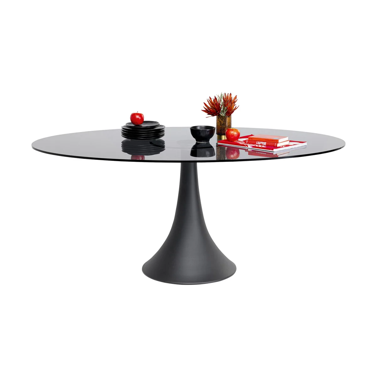 The Grande Possibilita Dining Table in smoke glass is a striking centerpiece for any modern dining room, blending timeless elegance with contemporary style. Its generous oval shape and sophisticated black tulip base make this glass dining table the perfect choice for those seeking versatility and premium design.