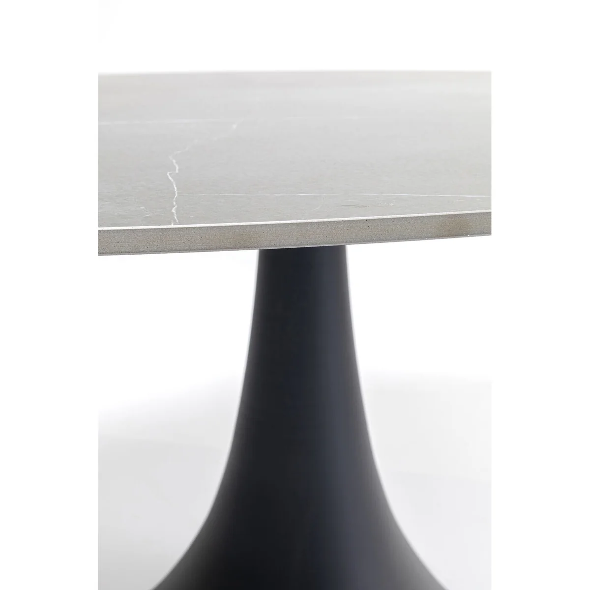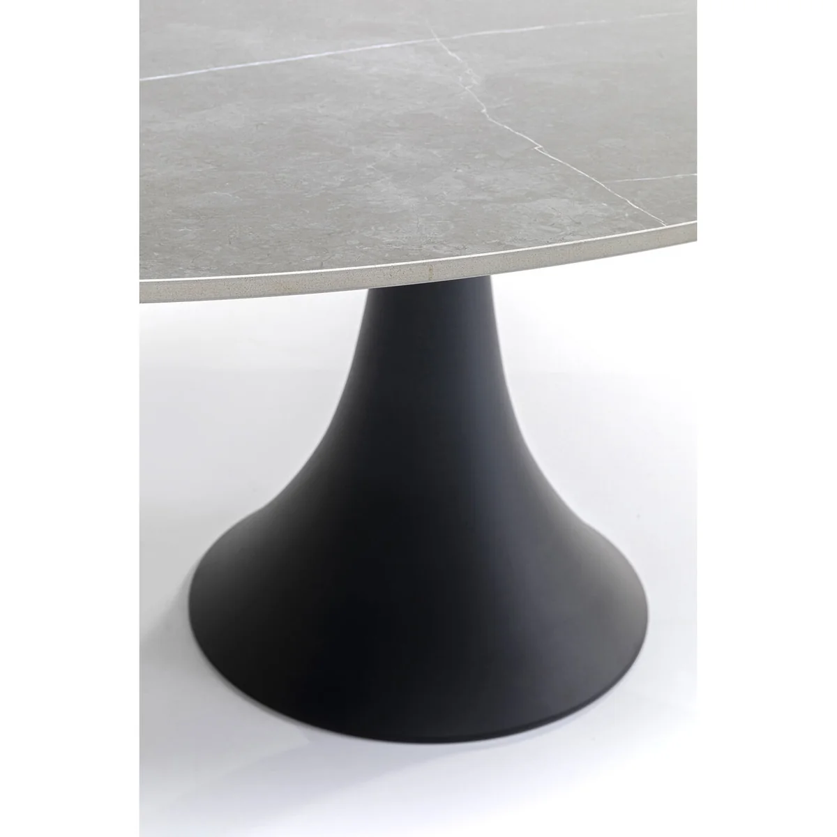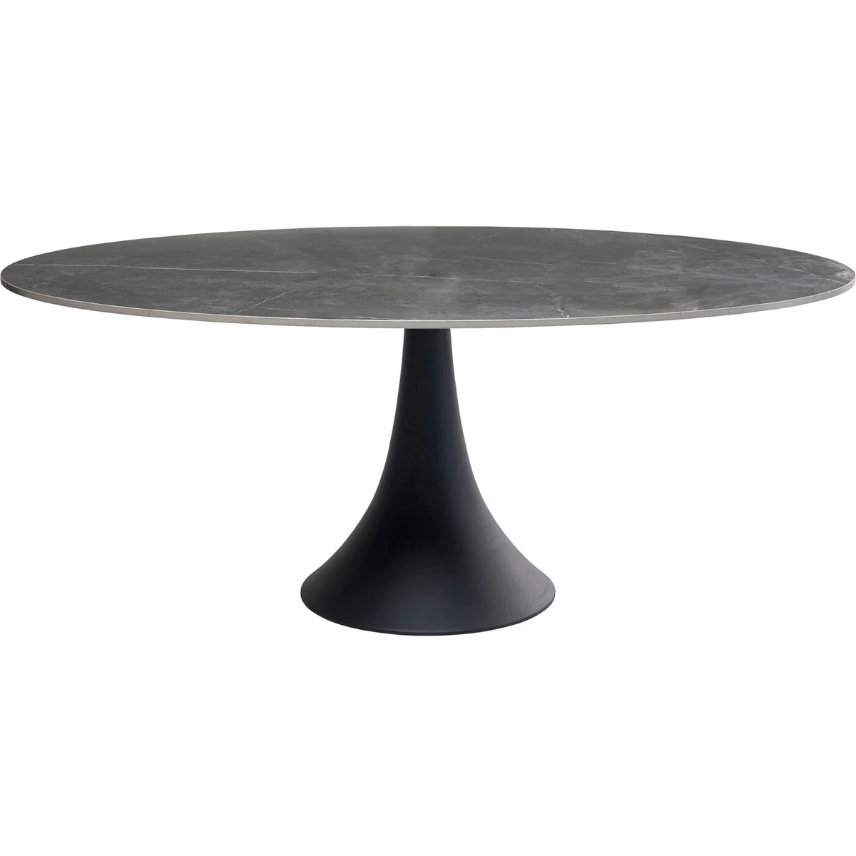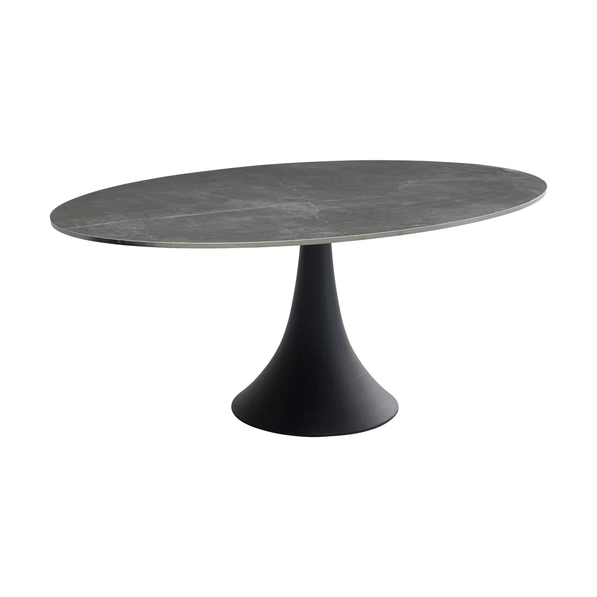• A magnificent oval dining table made of the finest materials for Indoor and Outdoor use • The exquisite top is made of dark ceramics, with a grain and look reminiscent of natural stone • Easy-care, hard-wearing surfaces • The solid, stable tulip-shaped central base is made of aluminium, powder-coated black • Tables in this series must be protected from waterlogging and wind when used outdoors