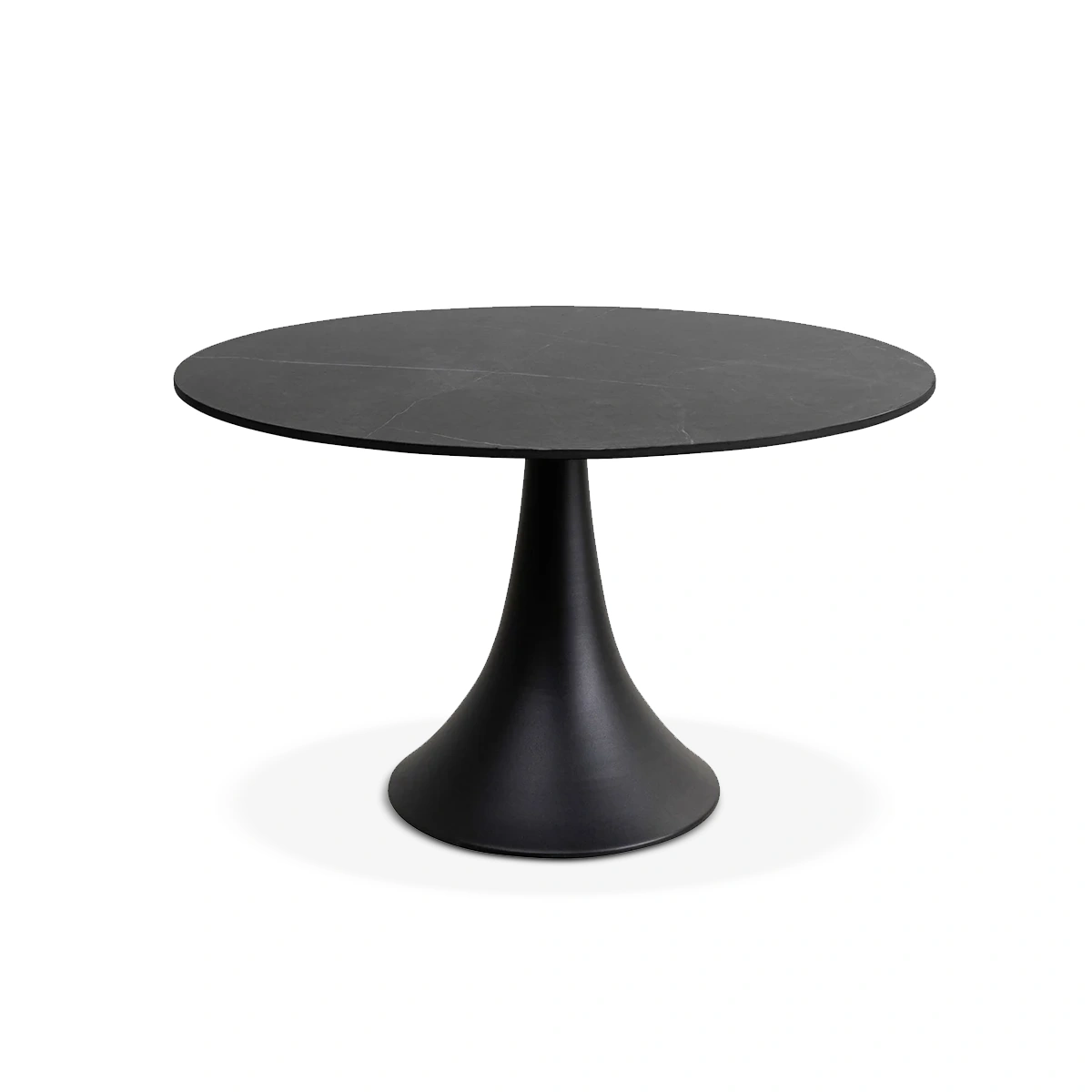 The Grande Possibilita Dining Table in black ceramic brings sculptural elegance to your dining room or garden, making it a premium centerpiece for any modern living space. This round dining table, with a generous 110cm diameter, invites conversation and connection, while its classic silhouette fits beautifully into contemporary and timeless interiors.