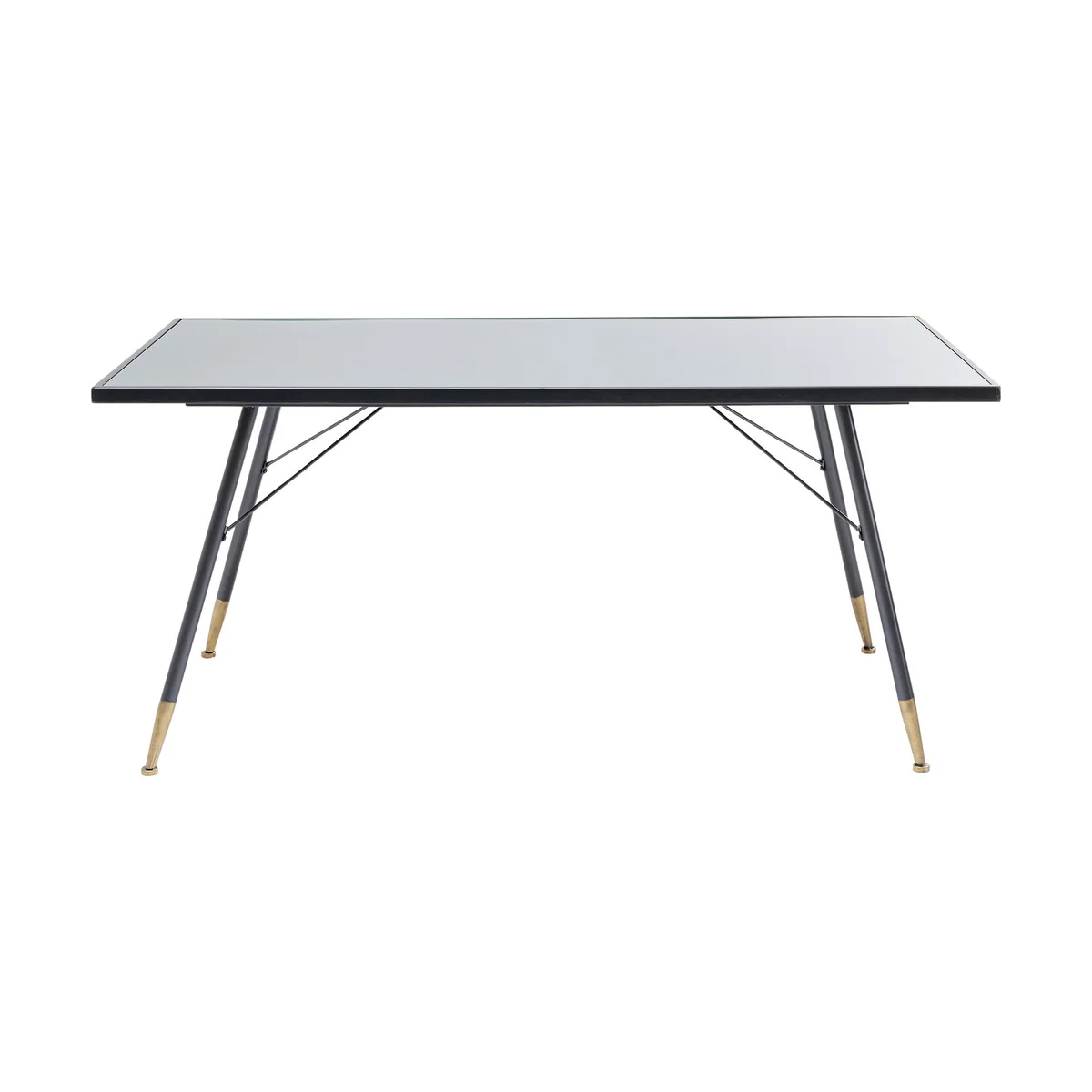 Designed with a sturdy powder-coated steel frame and slightly flared legs, this table ensures stability while brass accents add a touch of luxury. The glass top is non-transparent, highlighting the unique scalloped edge underneath. Its 160x80cm size makes it ideal for smaller gatherings or urban dining spaces.