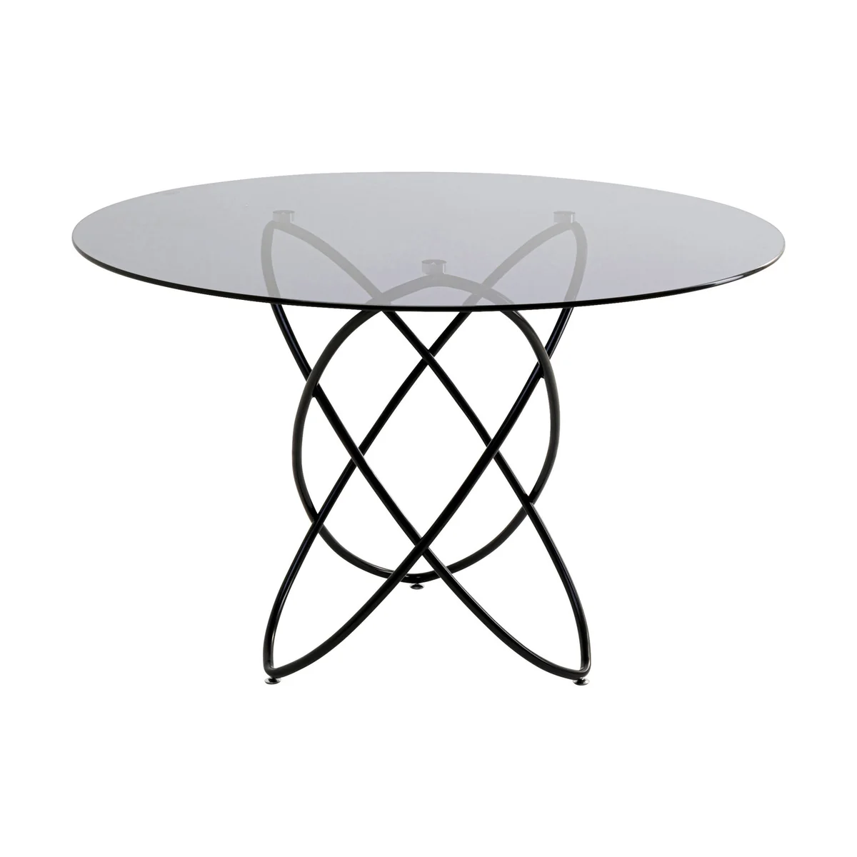 • Glass table as a visual highlight for the dining area with a dark tinted ESG glass top and black base • An exceptionally attractive piece of designer furniture with three ellipses made of lacquered steel as a base • A dining table with character that gives the dining room a completely new look • Modern design that impresses with its lightness • Space for 6 to 7 people, depending on the type of chair used