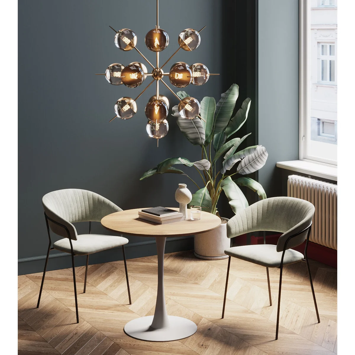 The small round dining table with a diameter of 80 cm is an absolute hit in terms of style. Advantage of the dining table design: the slim tulip base gives a lot of legroom and provides visual lightness. Plain dining chairs with high backs suit Schickeria just as well as retro swivel chairs or shell chairs. Two to three people will find space at a table with an 80 cm diameter. The KARE table series Schickeria is available in a wide range of variants, while individual combinations of top and table leg are also possible.