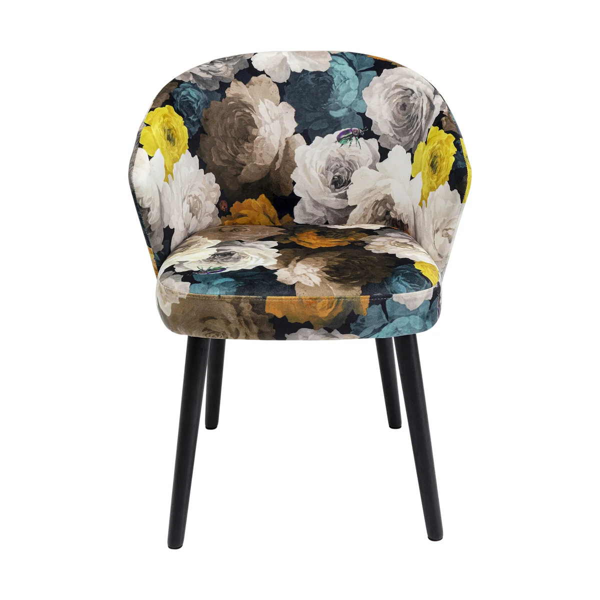 This chair boasts a multicolored polyester cover that adds a pop of color to your space. With dimensions of L 56 cm, D 54.5 cm, and H 76.5 cm, it comfortably fits in various dining room sizes. The armrests provide additional comfort and support, enhancing your dining experience.
