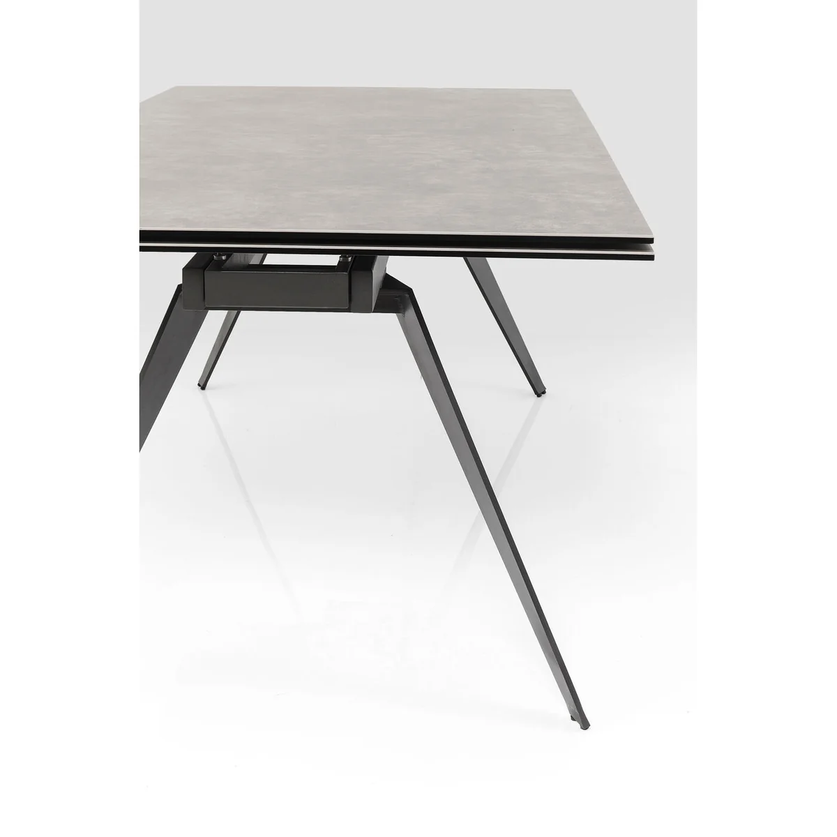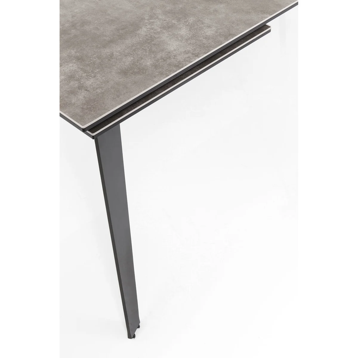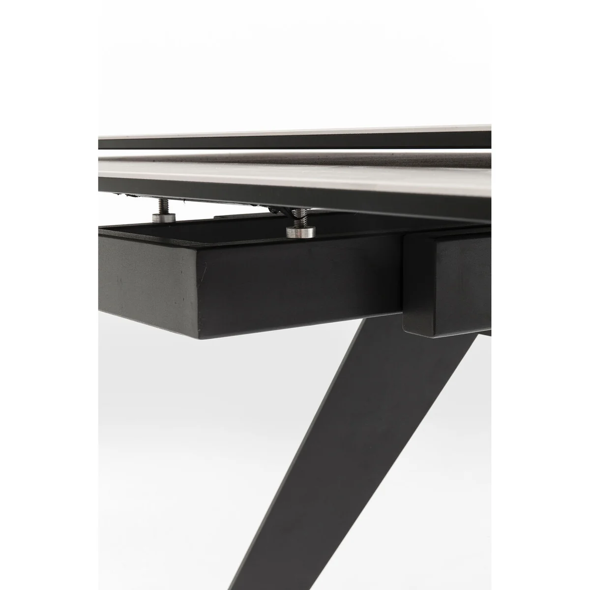 Crafted with a striking rectangular top featuring a ceramic-look glass surface, the Amsterdam table extends to seat 8 to 10 people. Its black nickel-plated steel frame ensures stability and ample legroom, while the extension mechanism allows for effortless expansion. The dark finish and sleek silhouette set this table apart in any modern home.