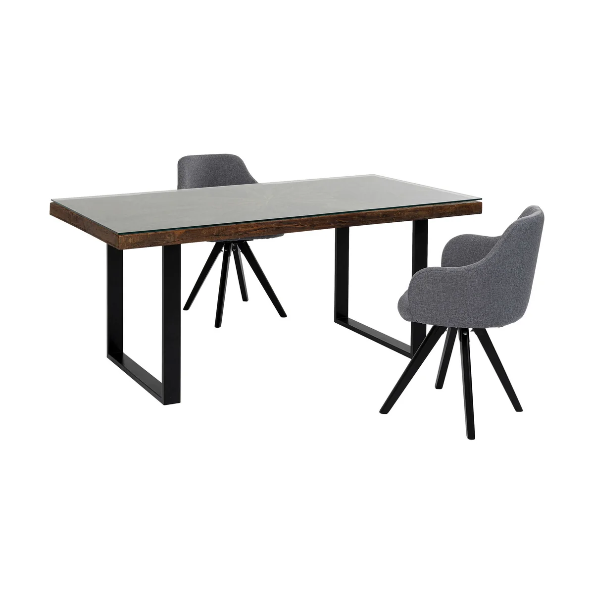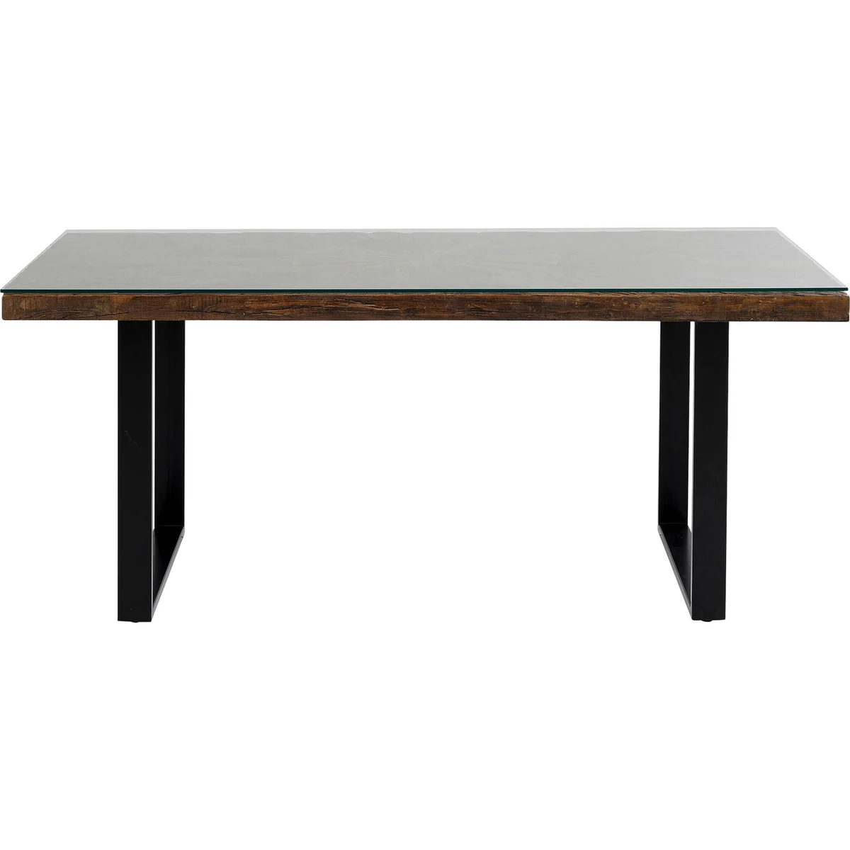 Bring modern style to the dining space with the Conley dining table in black, featuring a polished metal base and smooth tabletop. This rectangular table seats six comfortably, offering a sleek yet practical solution. Coordinates effortlessly with various chairs and other pieces from the Conley collection for a unified look.