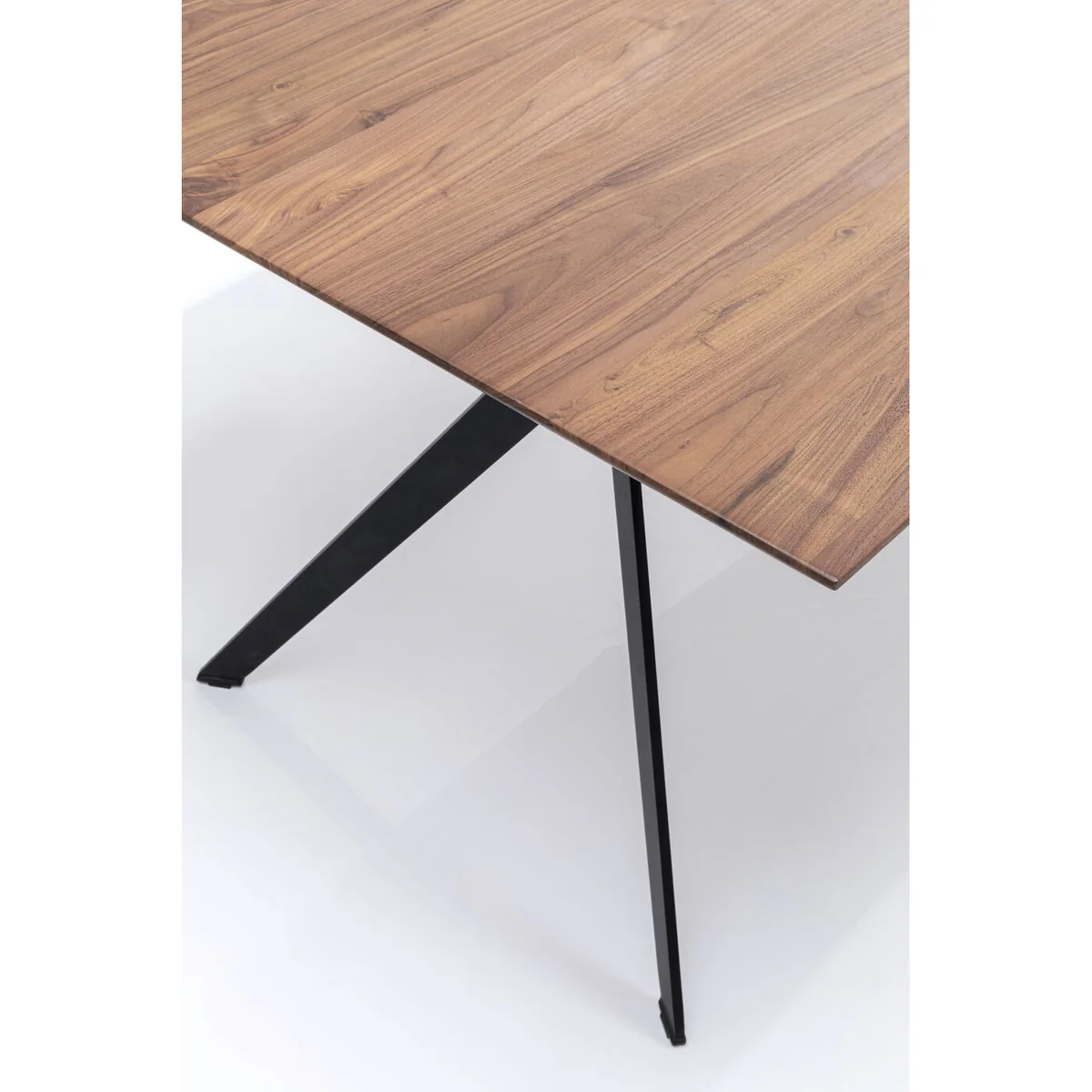 Experience the elegance of the Downtown Dining Table in walnut solid wood, featuring a striking black steel base and generous 180x90cm size. This modern dining table brings natural character and sophistication to your contemporary dining room with its unique wood grain and premium craftsmanship.
