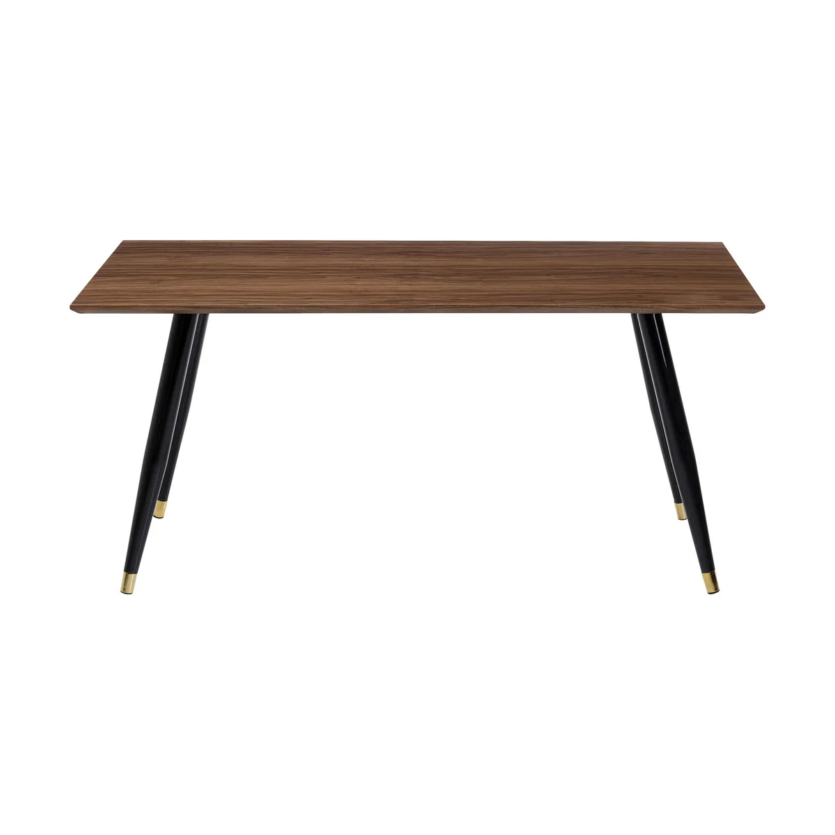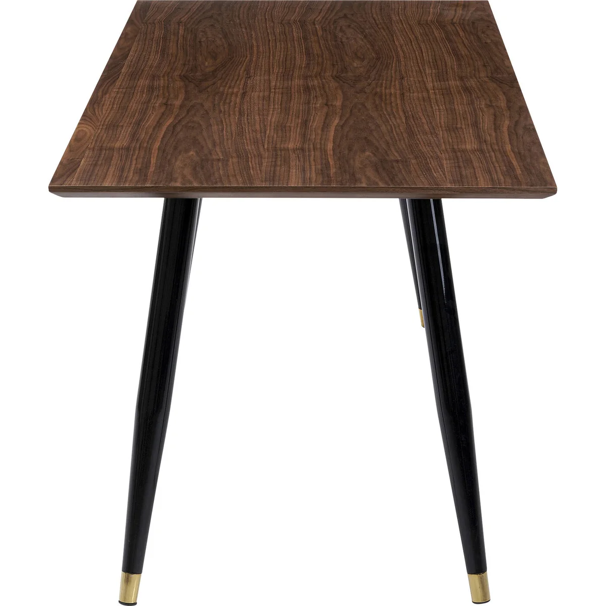 ● Rectangular table with a fine walnut veneer, bevelled table edge and black, sturdy steel legs ,The distinctive lines of this classic table make it easy to combine with all upholstered chairs in fabric and leather ● Because the dining table is the heart and social centre of the home, everyone should have a high-quality classic like Duran ● Whether family, friends or colleagues, up to six people can be comfortably seated here ● The wooden table offers ample legroom, while slightly slanted legs give it a subtle retro touch
