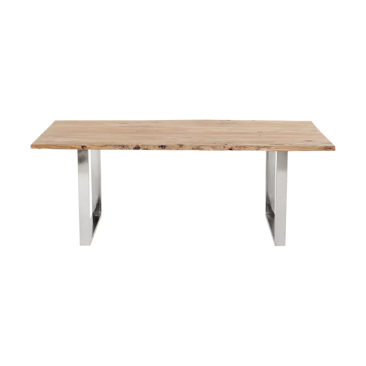 Crafted from solid acacia wood that is stained and lacquered, the Harmony Dining Table ensures lasting durability and refined style. The polished chrome base adds a striking contrast and enhances the table’s modern appeal, making it ideal for family gatherings or dinner parties. Generous proportions accommodate up to six guests comfortably.