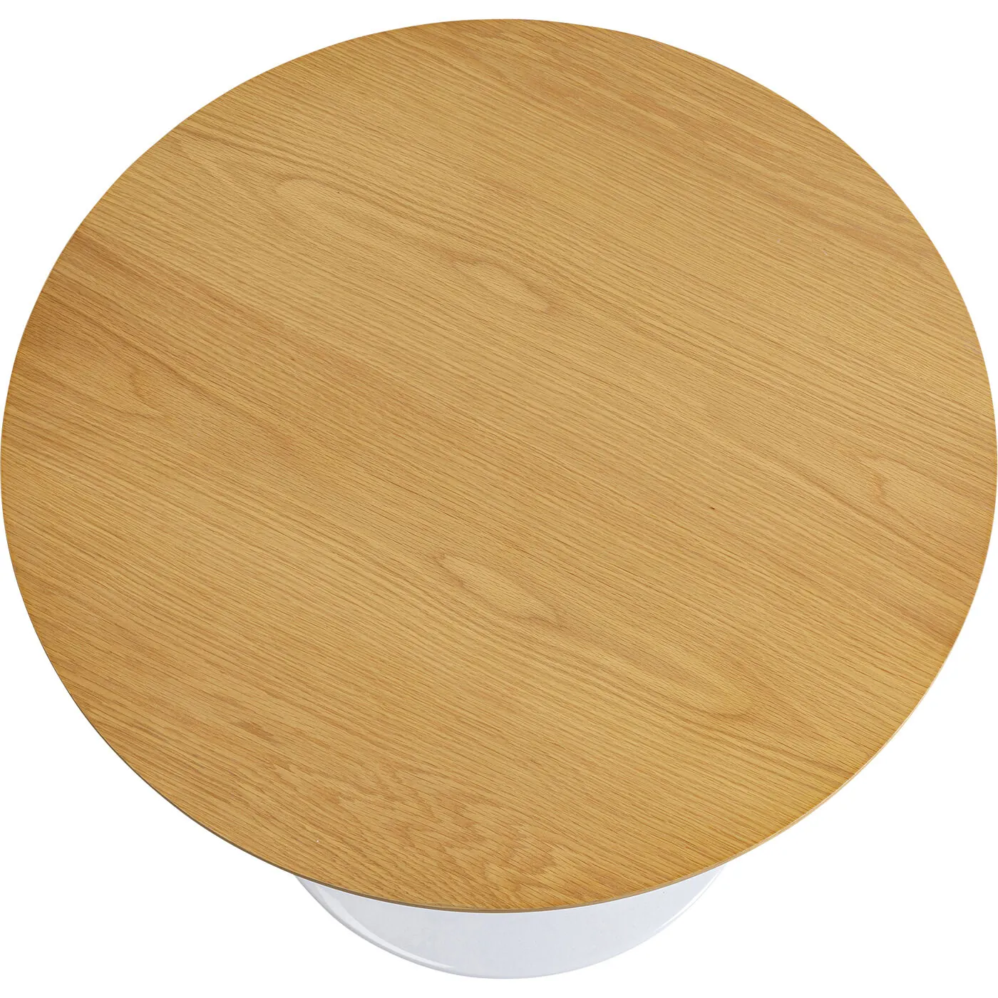 • A round modern table in the classic design tradition with a glossy white base and a fine top with real wood veneer in oak