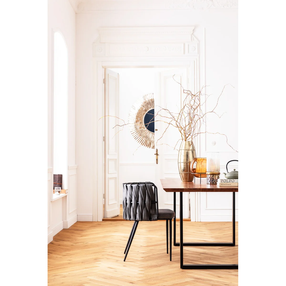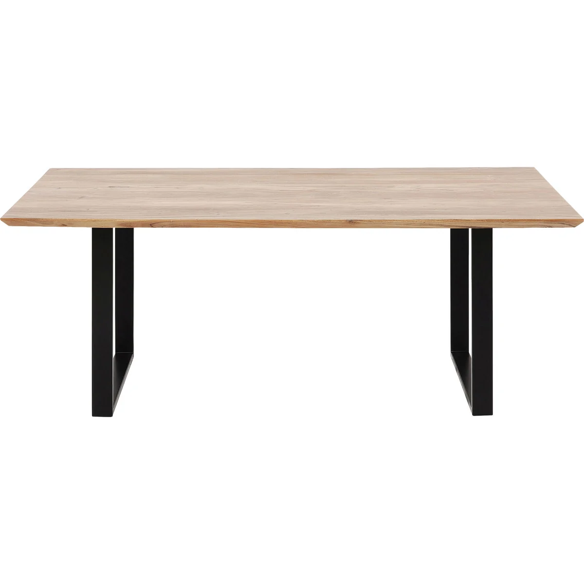• Modern, rectangular dining room table from the Symphony series with durable solid acacia wood top supported on a solid black steel frame • Wide, black-coated steel runners give the table a modern look • Individual quality: the table tops with their characteristic bevelled edges are crafted and refined by hand • Just as suitable as a work table in the home office as it is in the dining room as a centrepiece • Symphony is a varied series of dining tables in different sizes, with solid wood tops and frames finished in a range of ways