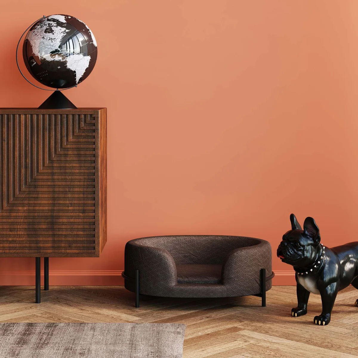 With this cute bed for cats or dogs you are not only doing something for the benefit of your pet, but you are also adding a very personal touch to your home. It means that you will always have your faithful companion close to you, whether it’s placed next to the sofa or the bed. The cover is velvety soft and adorned with a subtle, graphic tone-on-tone pattern. The design and colour make the dog basket easy to combine with any style of furnishing.