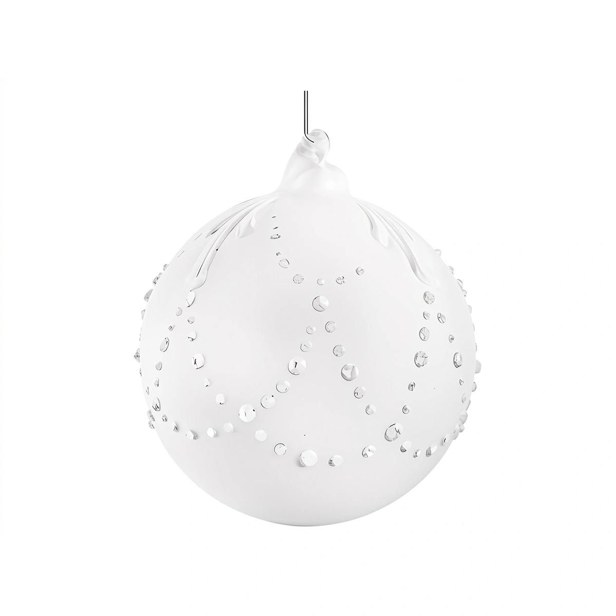 The Dotted Garland Small Glass Ball Ornament in white is a subtle blend of simplicity and scintillation. This delicate, 8CM ornament adds a touch of elegance to any decor setting.