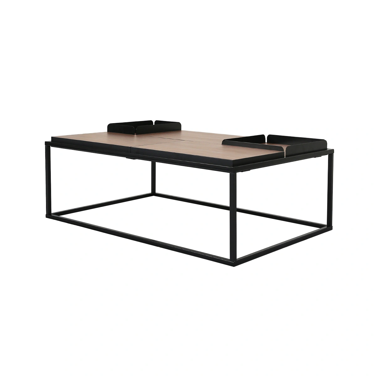 Douro Walnut Coffee Table with 3 Tops & 2 Boxes - Metal Lacquered in Matt Black