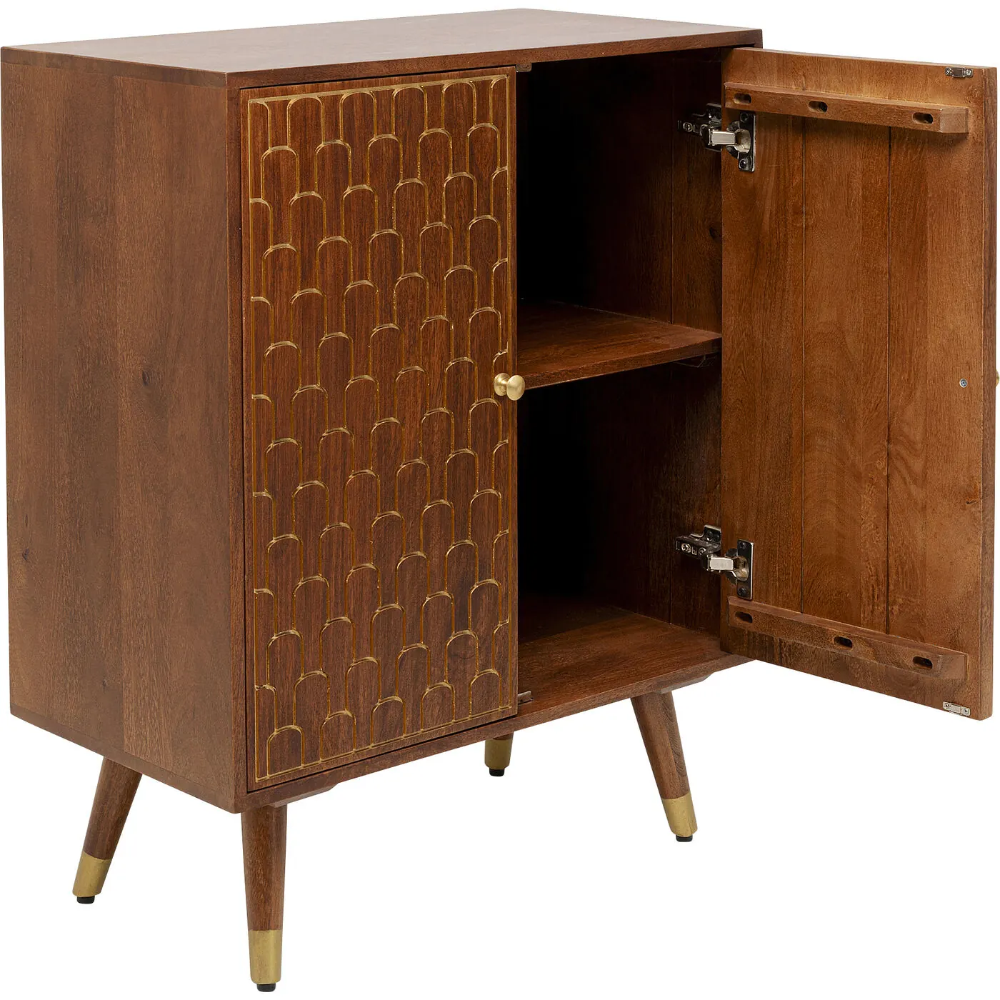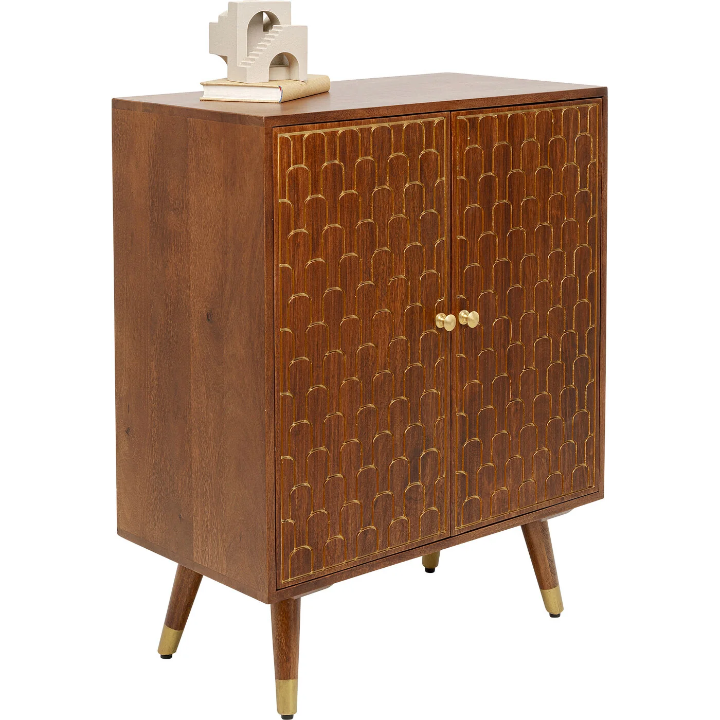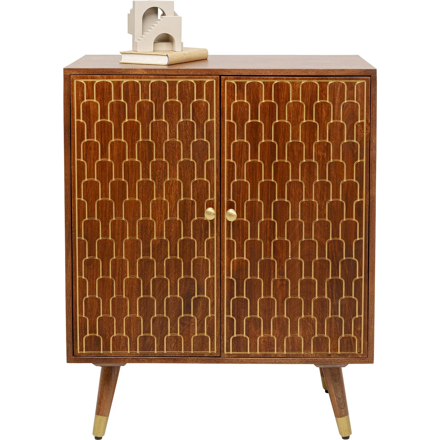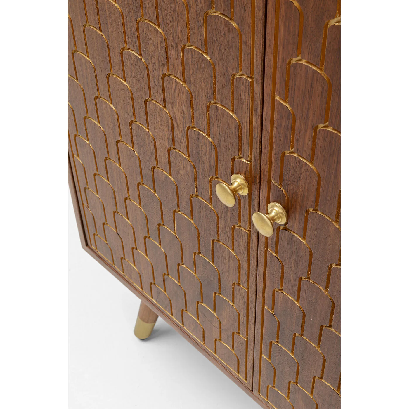 The designs of our furniture series Muskat are characterised not only by their strikingly beautiful Mid-Century look, but also by their elaborate manual craftsmanship. Decorative & unique: the oriental decorations engraved on the fine solid wood are lovingly finished by hand in gold. Each Muskat article is defined by its own individual character! Unique pieces that look wonderfully at home in any style of furnishing.