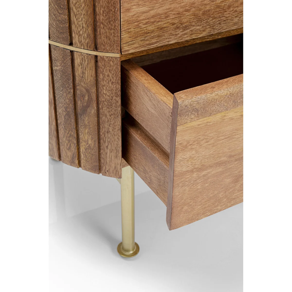 What distinguishes real super models? Their attitude and a distinctive look. The models from the new Grace collection bring exactly these qualities as furniture top models. On the one hand, this is due to the noble material composition of solid wood and marble. On the other hand, the body in the form of a cut ellipse makes a really good figure. Grace is made by hand, which shows the unusual fronts with rounded doors, a fine recessed trim and the contrast of smooth and textured surfaces.