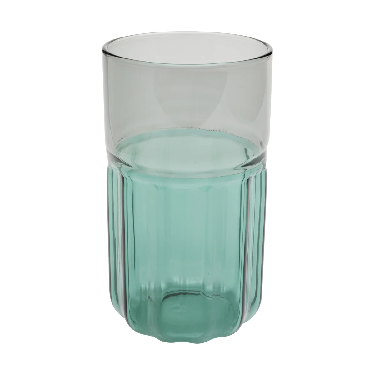 The Duetto Longdrink Glass in rich green is a stylish addition to any dining setting. Its cool, colored glass sets off fascinating accents depending on light incidence, making it a unique centerpiece.