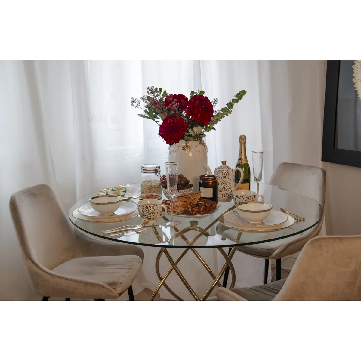 The Eastside Dining Chair is the perfect blend of sophistication and comfort. Its expansive, cozy design will have your guests feeling like royalty, while the champagne-colored finish adds a touch of elegant flair. Treat yourself and your loved ones to the ultimate dining experience.