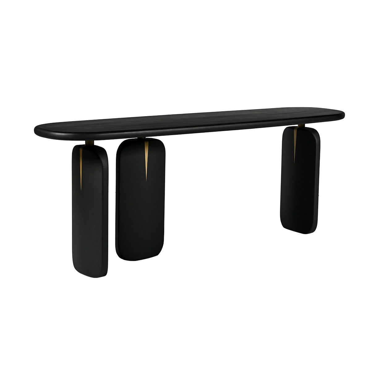 Eclips Console Table in black brass is a solid wood console table created for sleek hallway styling and contemporary interiors.