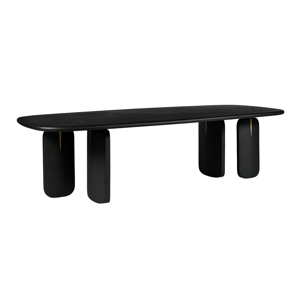 Eclips Dining Table in black brass is a solid wood dining table designed with bold modern form and contemporary presence. Its dark stained finish and strong structure create a statement piece for dining rooms.