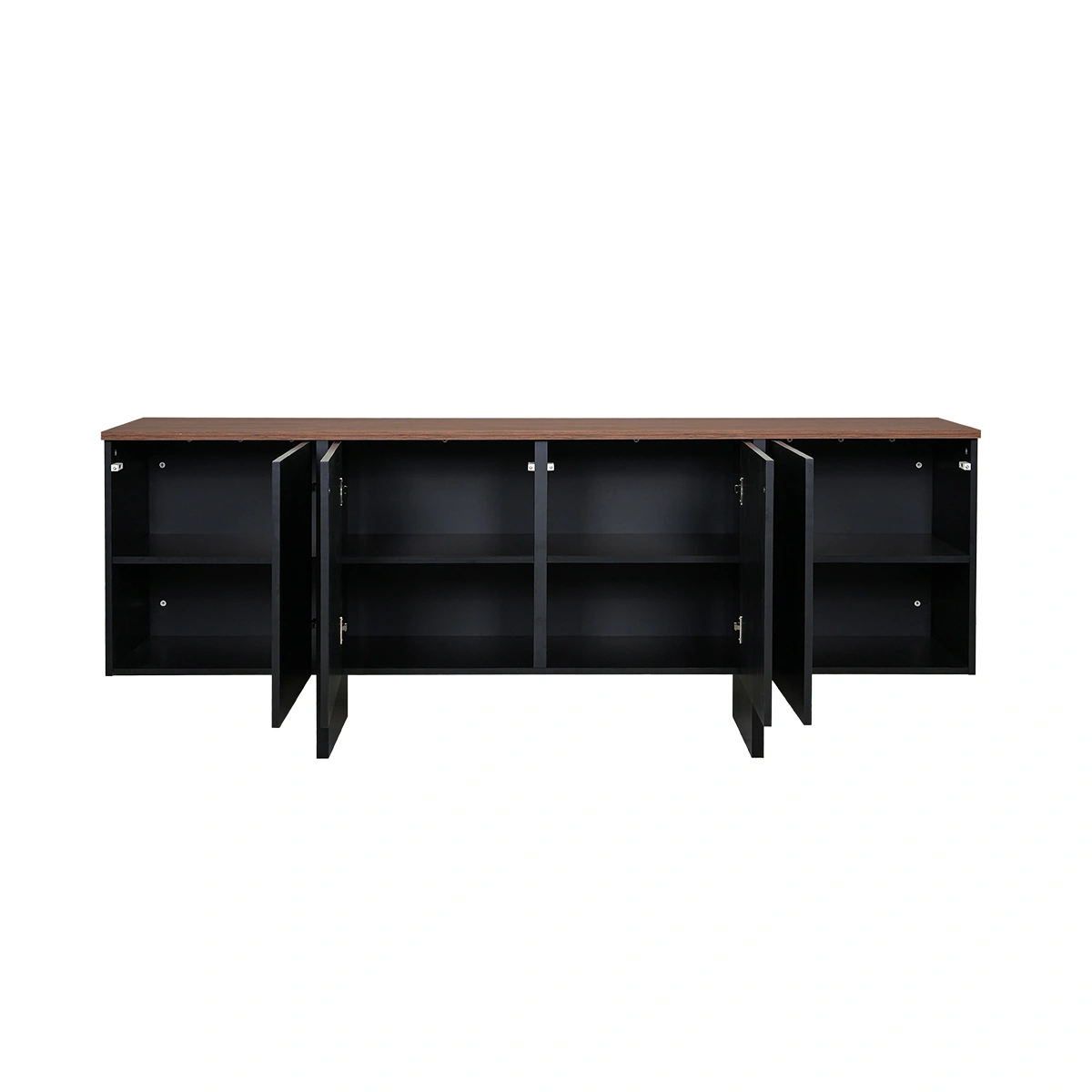 Boasting a size of L 200cm W 42cm H 76cm, the sideboard offers ample space for your essentials. It features a lacquered MDF and melamine construction with a stunning walnut finish, ensuring durability and long-lasting beauty. The clean lines and warm wood tones enhance its visual appeal.