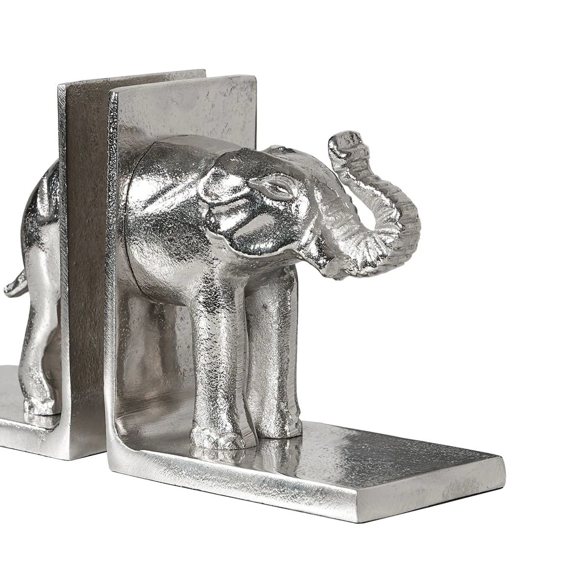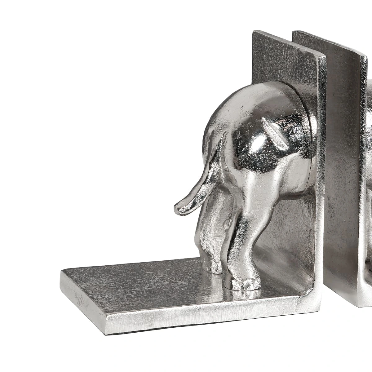 Designed meticulously with a weight of L 27.5 cm | W 9 cm | H 15.5 cm, these bookends are made from durable aluminium. The raw silver finish adds a sophisticated touch. The unique elephant body form adds an exotic appeal, making them a perfect accessory for your bookshelf.