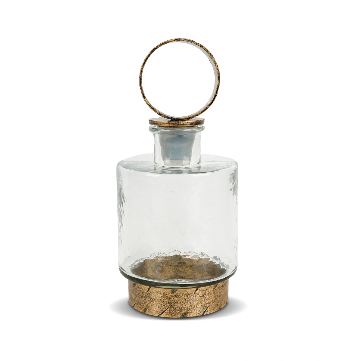 This decanter features a compact size of 13.5 cm in diameter and 31 cm in height, perfect for any bar or dining table. The antique gold finish adds a touch of sophistication, while the clear glass body allows for easy viewing of your favorite spirits.