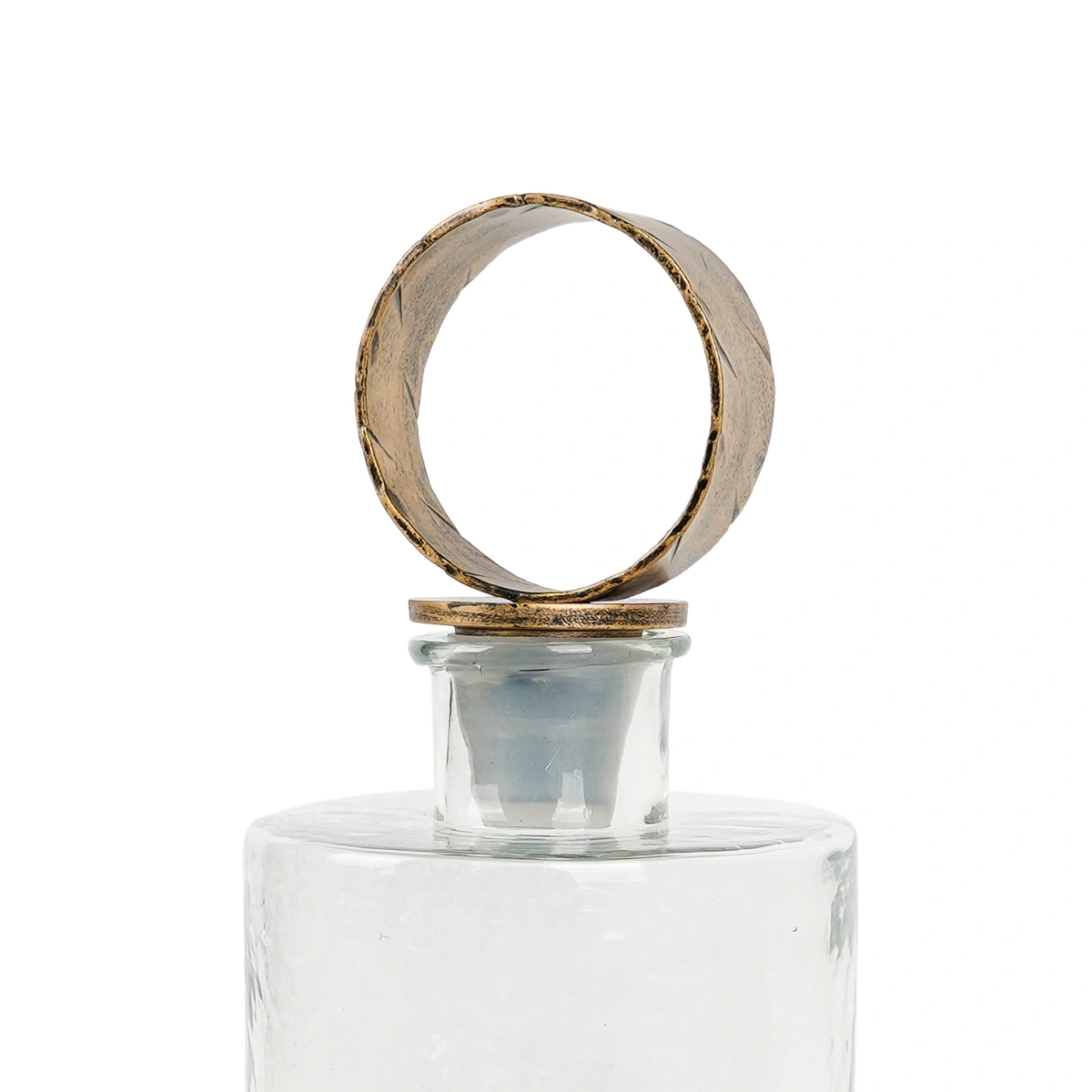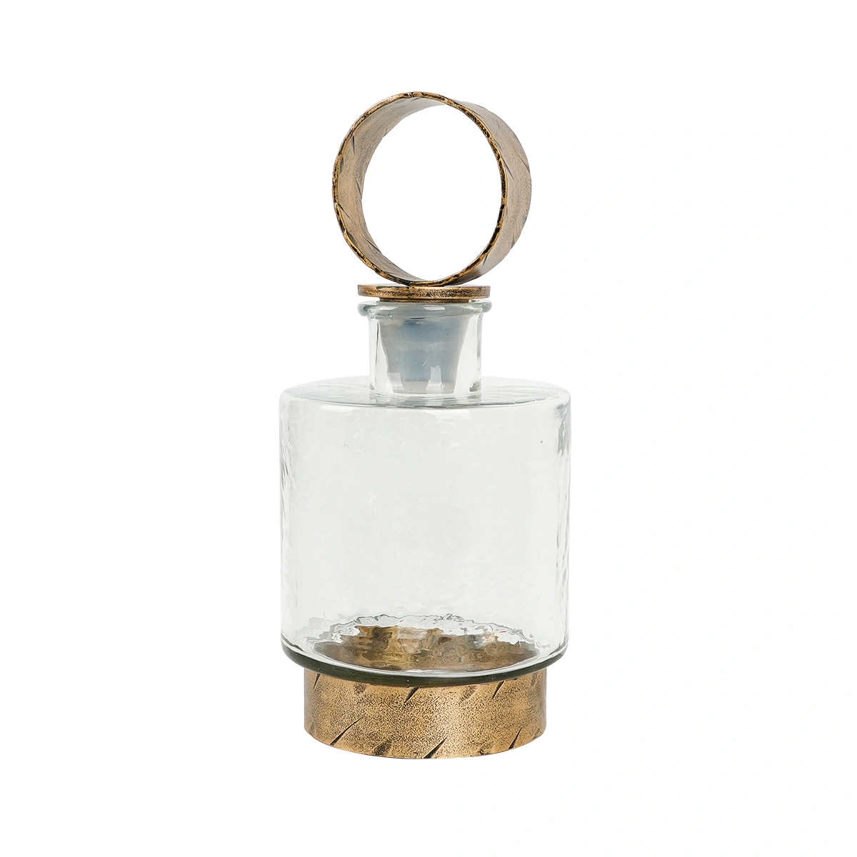 Make an elegant statement with our Evadne Glass Decanter in Antique Gold. Cast from a blend of durable iron and clear glass, this stunning piece is as functional as it is beautiful.
