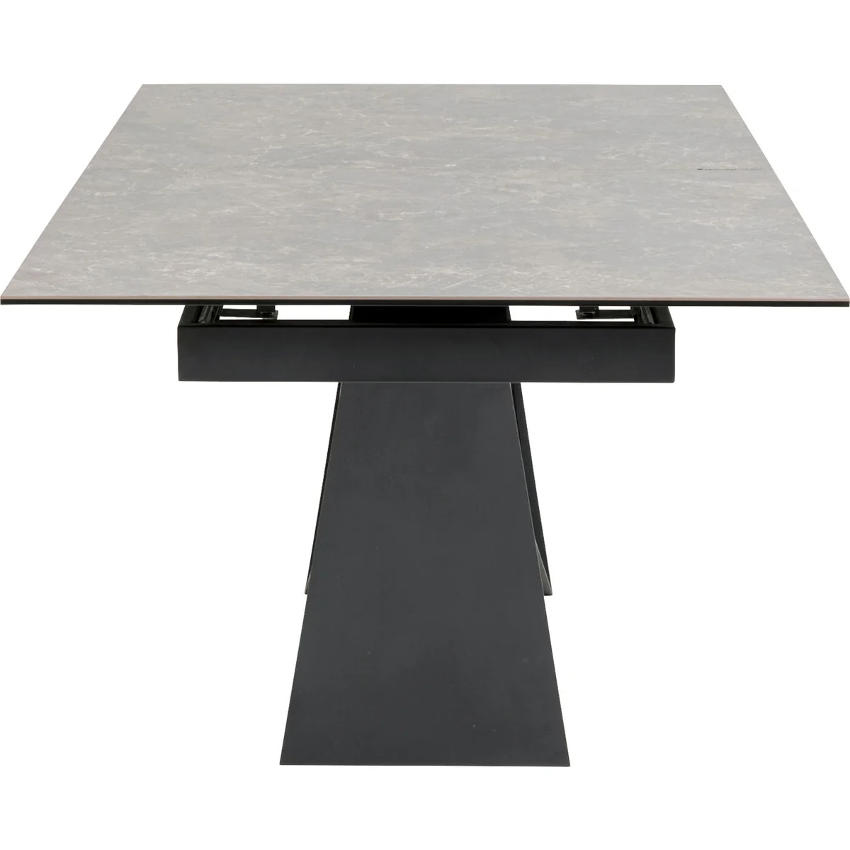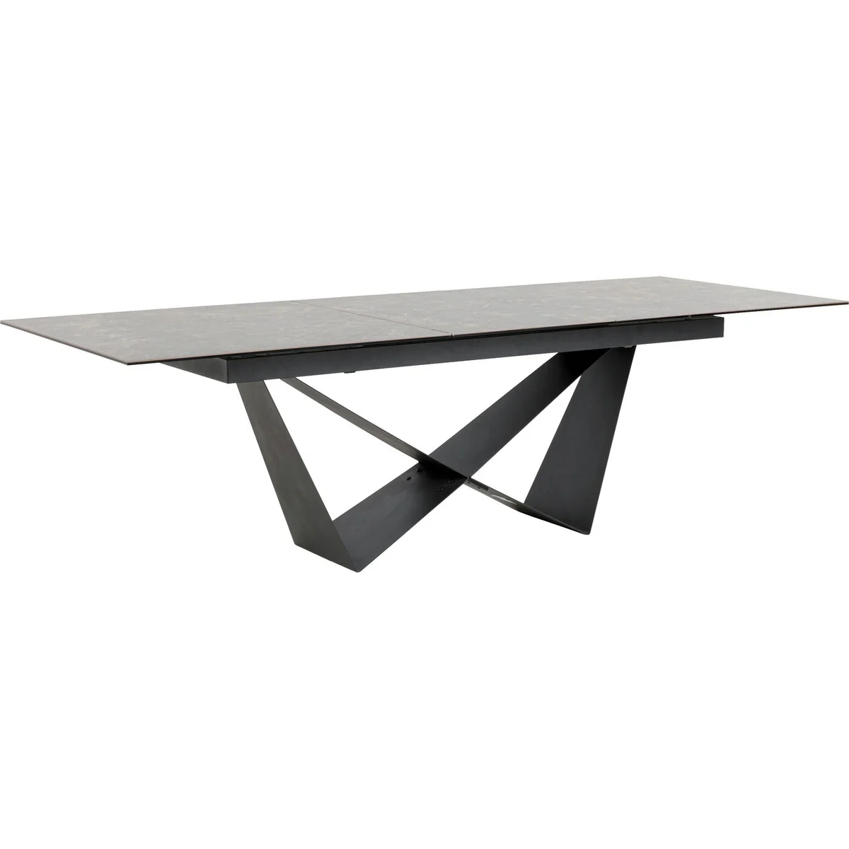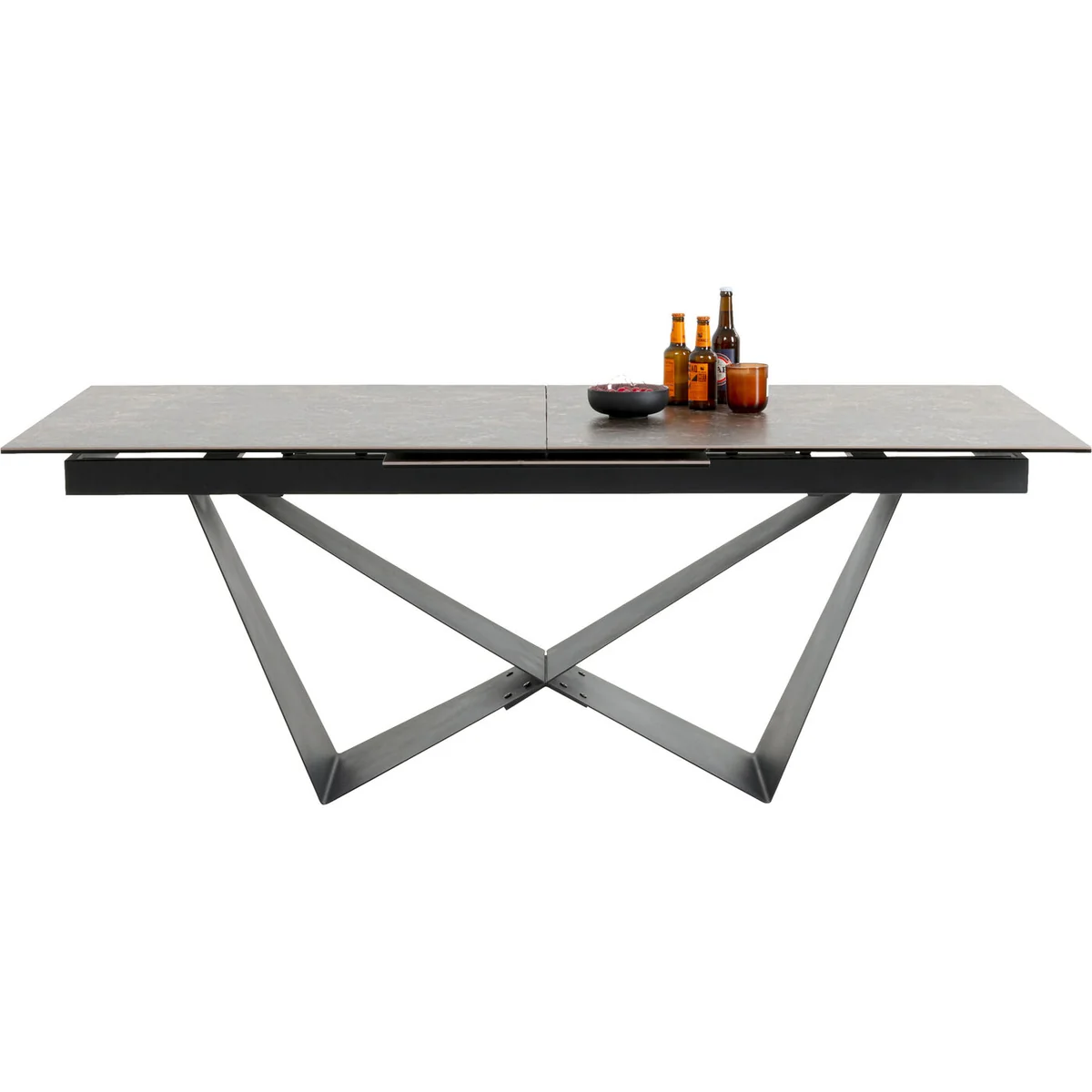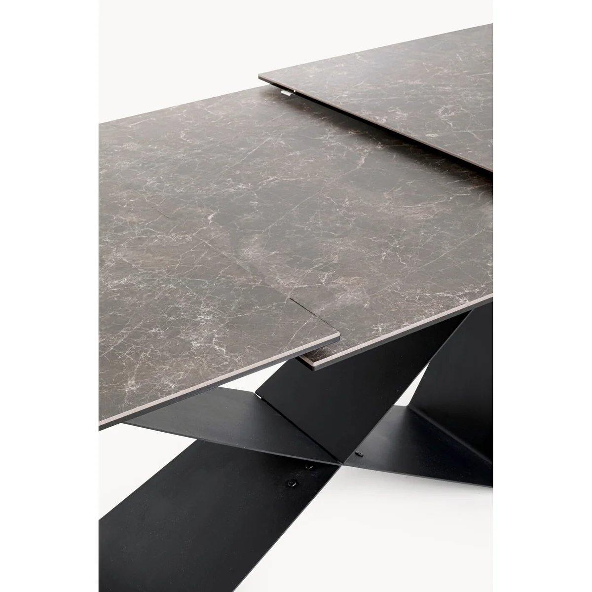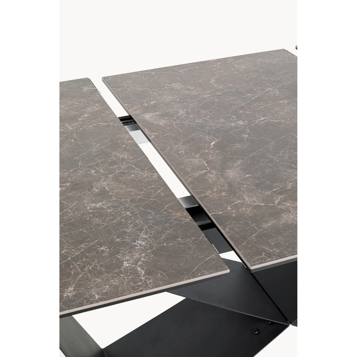 Featuring a high-quality ceramic top on toughened safety glass, this table is hard-wearing and easy to maintain. The intuitive extension mechanism allows seating for 6 to 10 people, while the geometric steel frame delivers a modern aesthetic. The elegant brown tones complement a wide range of interiors, making it a standout piece in any dining space.