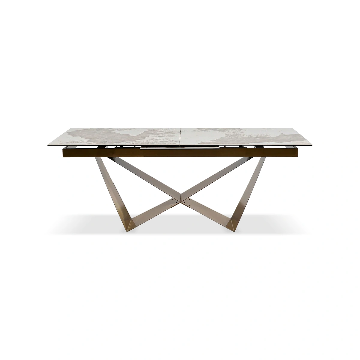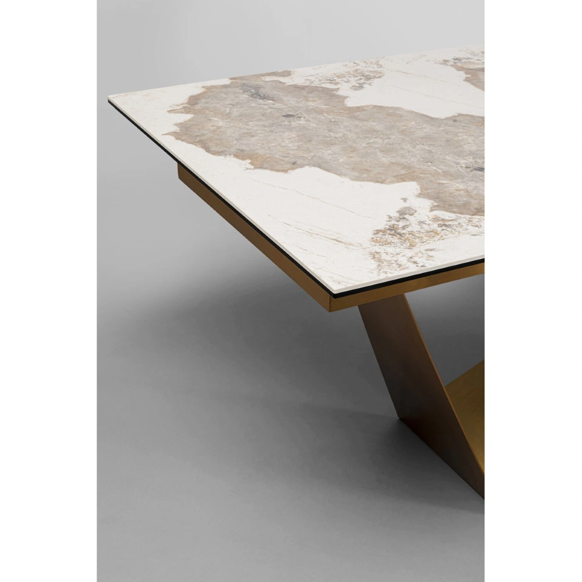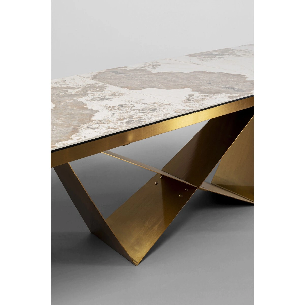 Connesso Extension Dining Table Beige Ceramic Brass 200(+60)x100cm