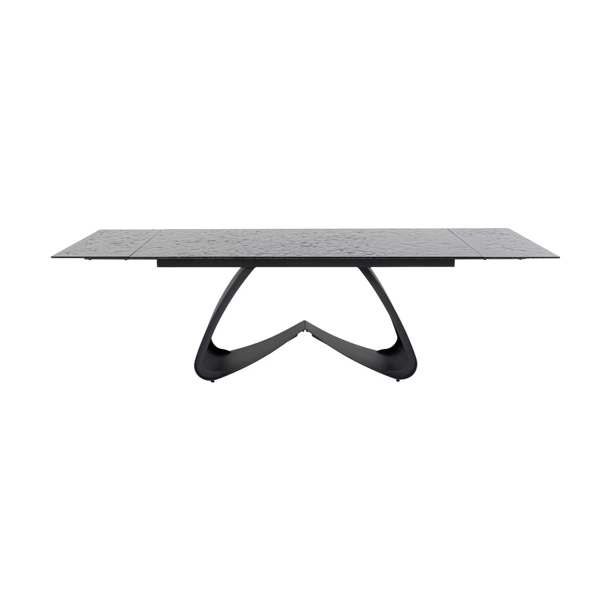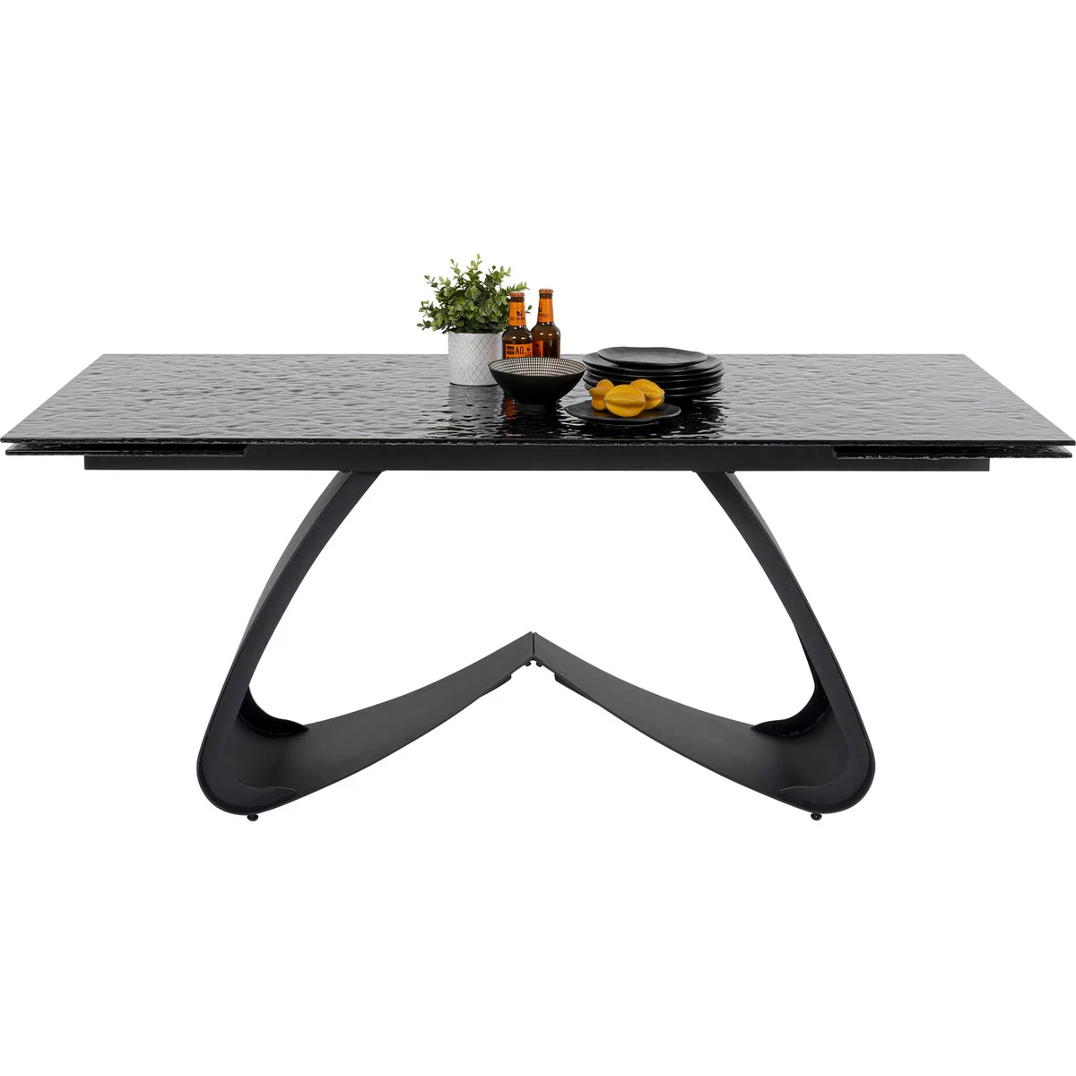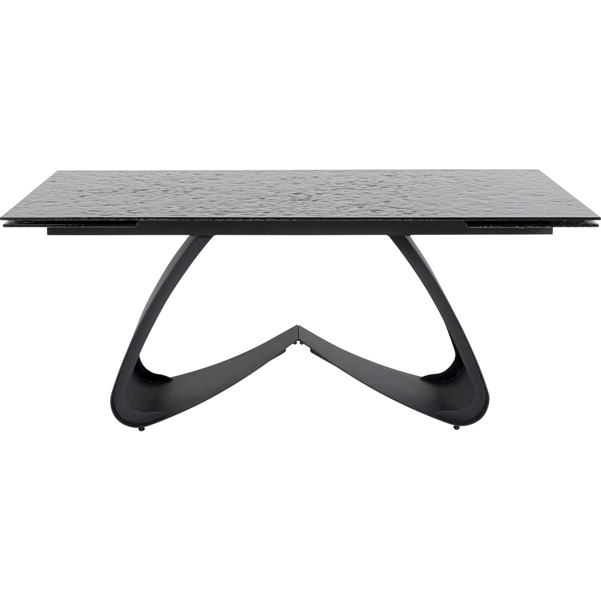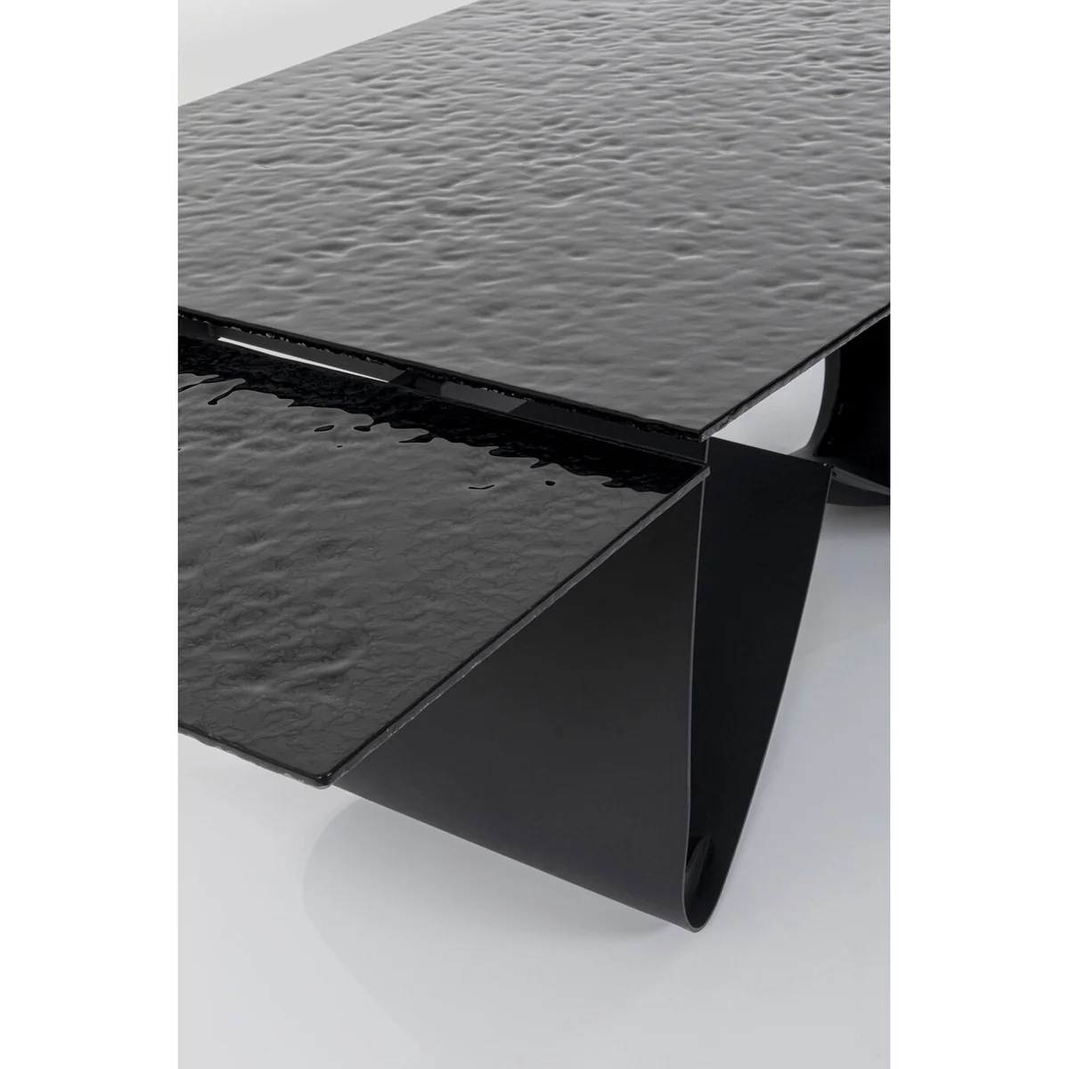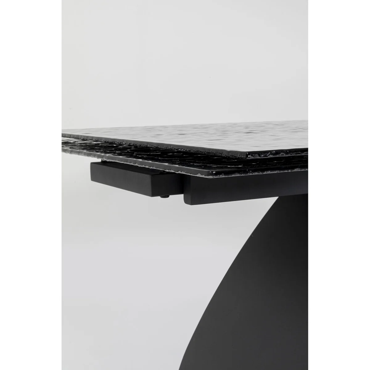 Function meets exclusive design in this extendable steel dining table. With its base in a curved shape and with the black glass top that looks like a slightly moving water surface, Bellagio is a designer table and eye-catcher in your dining room. An extendable dining table offers you many advantages in the dining area. It allows you to entertain a variable number of guests, saves space in your everyday life, adapts to different occasions and enables an adjustable table size for a pleasant dining experience.
