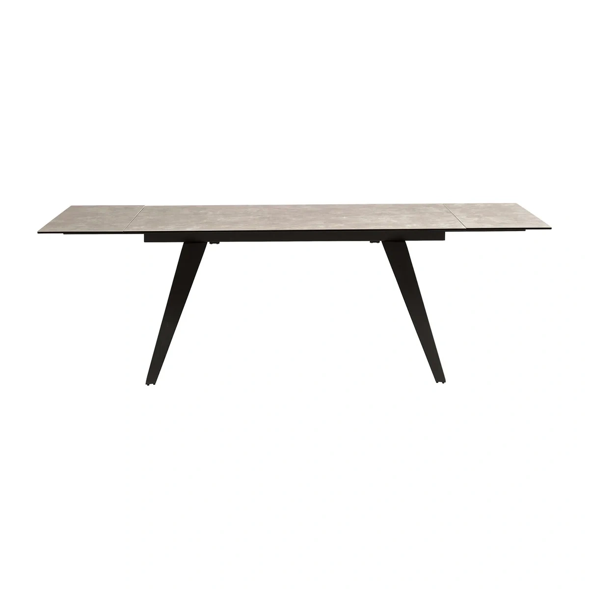 Table: this large dining table combines functionality with modern aesthetics. Very practical pull-out function with which the surface can be enlarged quickly and easily. Attractive surface structure made of 3mm ceramic and 8 mm safety glass. Offers space for 6-10 people.