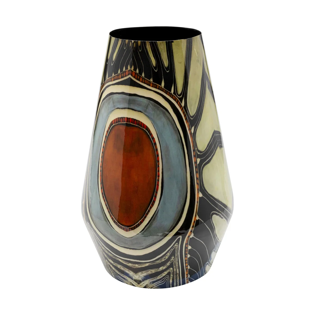 The Fabuloso Lacquered Aluminum Vase in Multicolor provides a seamless blend of nature and modern design. Its glossy elegance is complemented by an earthy look reminiscent of polished rock formations, giving your room calming depth.