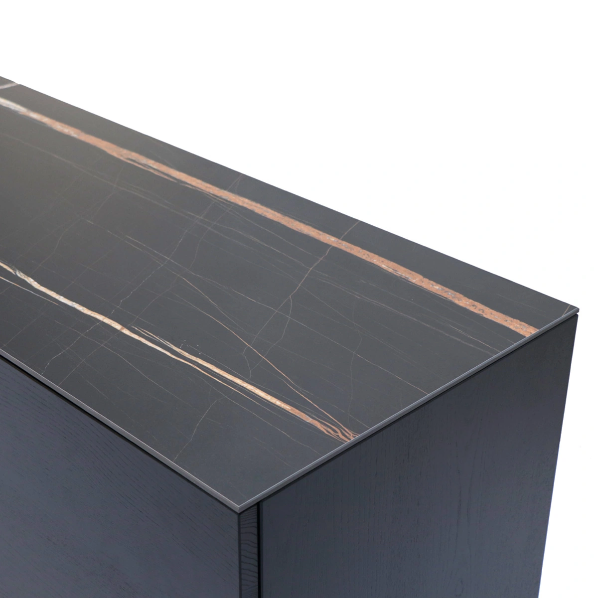 Benefits of this sideboard lie in its versatility and functionality. It offers a stylish solution for storage needs while adding a modern touch to your home. The dark ash finish and ceramic top blend well with various interior styles, making it a great addition to any home.