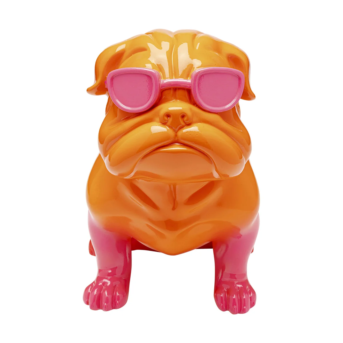 This unique decorative figure stands out with its bold colors and stylish sunglasses. Crafted from high-quality artificial stone, it measures L 23.5 cm, W 43 cm, and H 37 cm. It's a must-have piece for dog enthusiasts, adding fresh flair to any shelf, sideboard, or table.