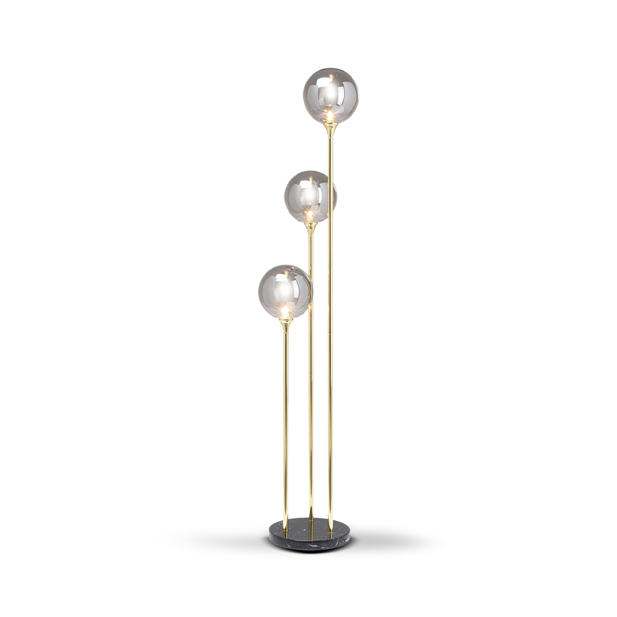 • Glamour in a classy form: a high quality floor lamp, handcrafted, with marble base and three round shades of slightly reflecting glass