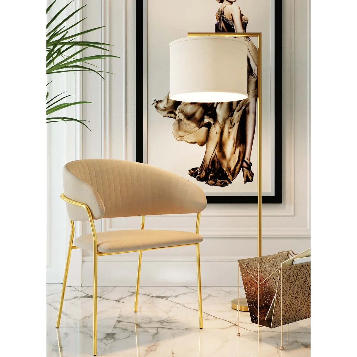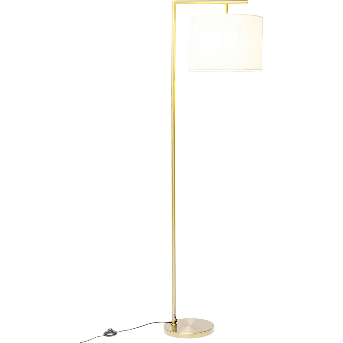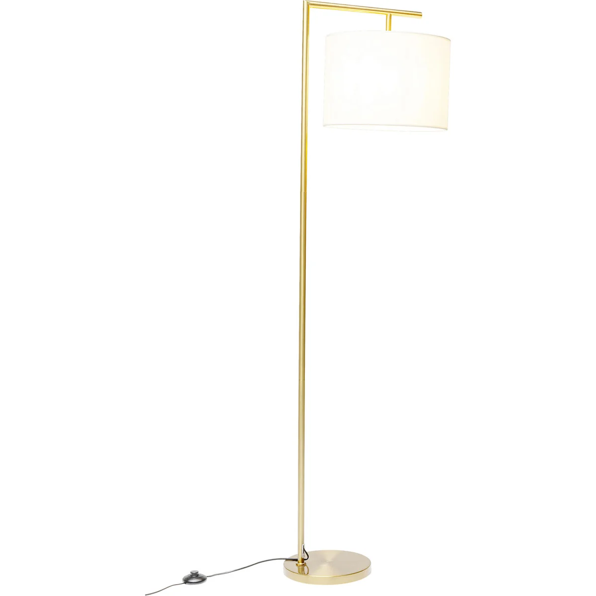- A large floor lamp in gold with a white shade in a perfect classic design - Versatile: the 160 cm high floor lamp is ideal for reading, as a companion to the sofa and for mood lighting - Material mix: the shade made of a cotton blend provides pleasant light, while the frame is made of sturdy steel - Pure elegance in a straight-lined, modern design idiom with a pinch of glamour - Bulb type LED, socket E27, number of bulbs 1, max. 40 W, bulb not included