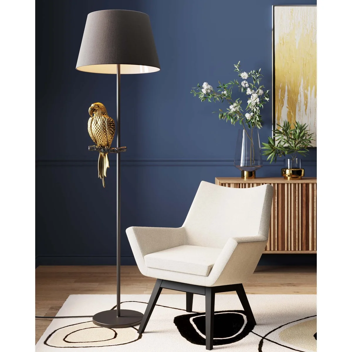 Benefit from the elegance and exotic appeal this floor lamp brings. Its golden hue complements various color schemes while the playful parrot design adds a touch of whimsy. Perfect for a living room, bedroom, or study, it's sure to enhance your interior aesthetics.