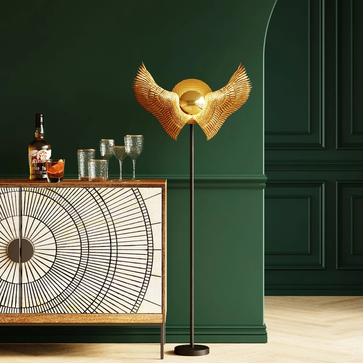 This Bird Wings Floor Lamp features a nature-inspired design that adds a whimsical touch to modern interiors. Its unique structure is perfect for creating a statement in living rooms or creative spaces.