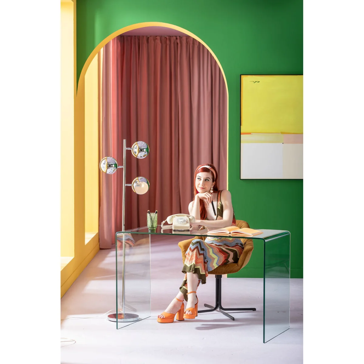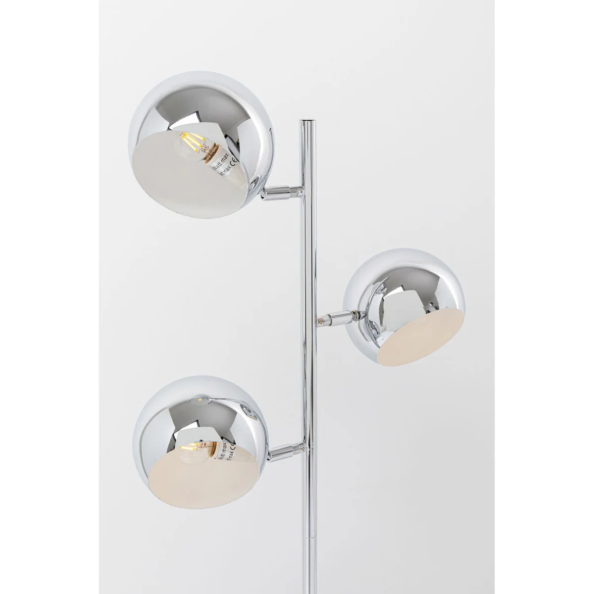 The modern, shiny floor lamp is a real all-rounder. As a reading lamp, you can direct the light beam precisely thanks to the adjustable lampshades. Carlotta is also suitable for illuminating individual decorative objects or pictures on the wall. Another advantage of this chrome lamp is its slimline design. It is slim enough to be placed next to a sofa, armchair or sideboard even when space is limited. Its minimalist style and clear design adapt easily to any living style.