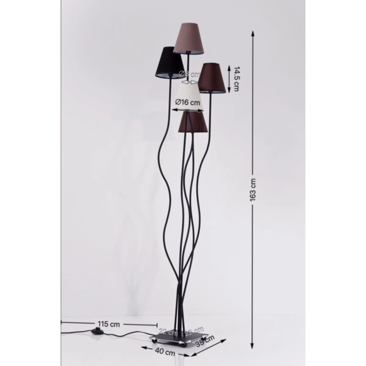 The lamp features a steel powder-coated frame, with a flexible design, allowing you to adjust the height and angle for optimal lighting. With dimensions of 40 cm length, 35 cm width, and 163 cm height, it's the perfect size for any room.
