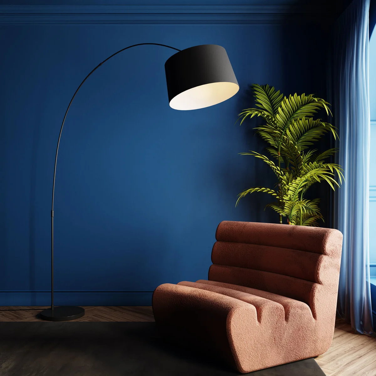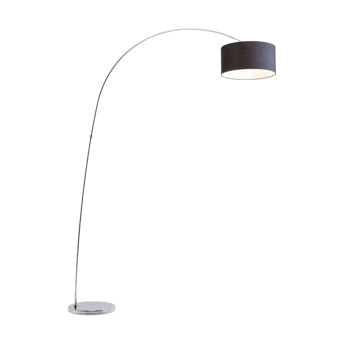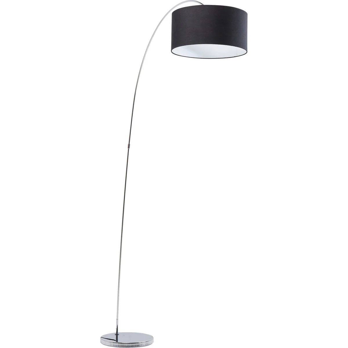 An elegant standard lamp in a striking design - Timeless forms and a touch of extravagance. Gooseneck is elegant and unconventional but at the same time light and lively. This enables it to adapt smoothly to any type of surroundings, bringing light to the darkness everywhere in a stylish and attractive manner. High-gloss base in chrome look. The lampshade comes in elegant black with a white interior, radiating pleasant, dazzle-free light The Gooseneck standard lamp is also available in other versions.