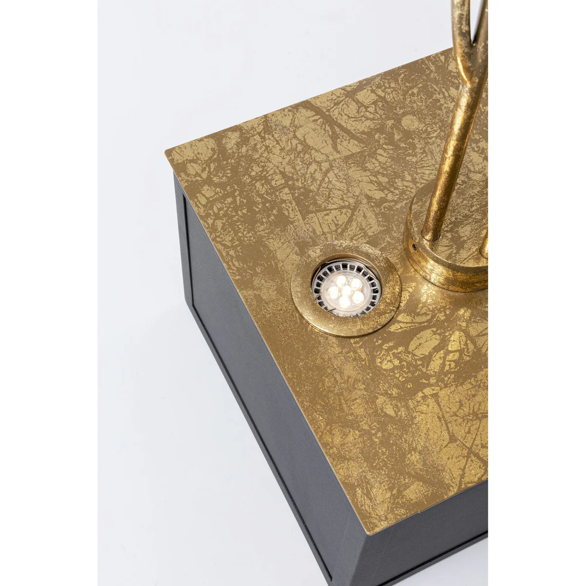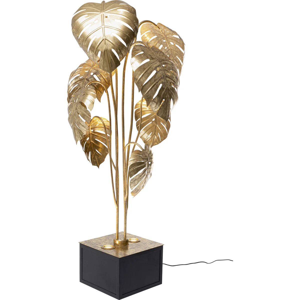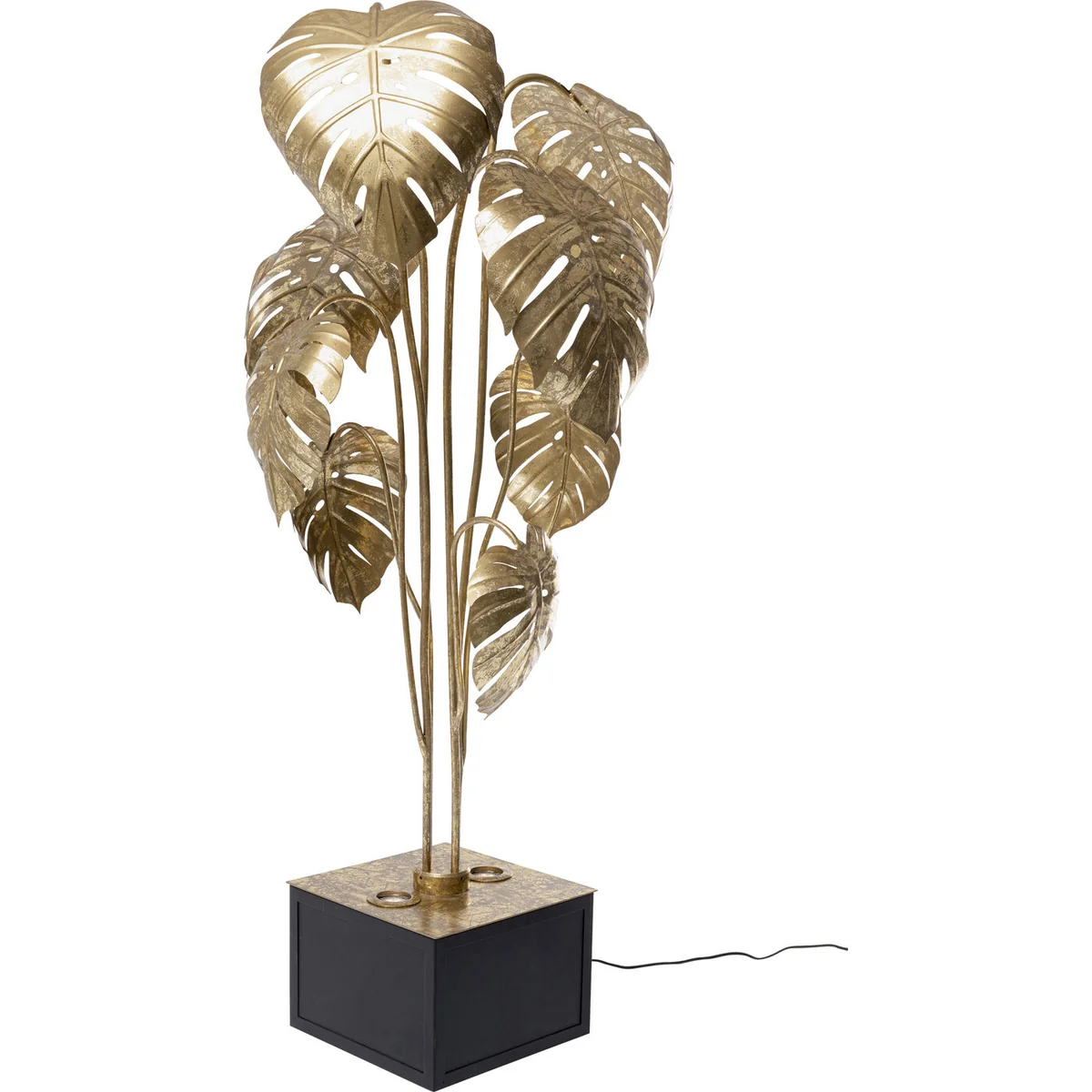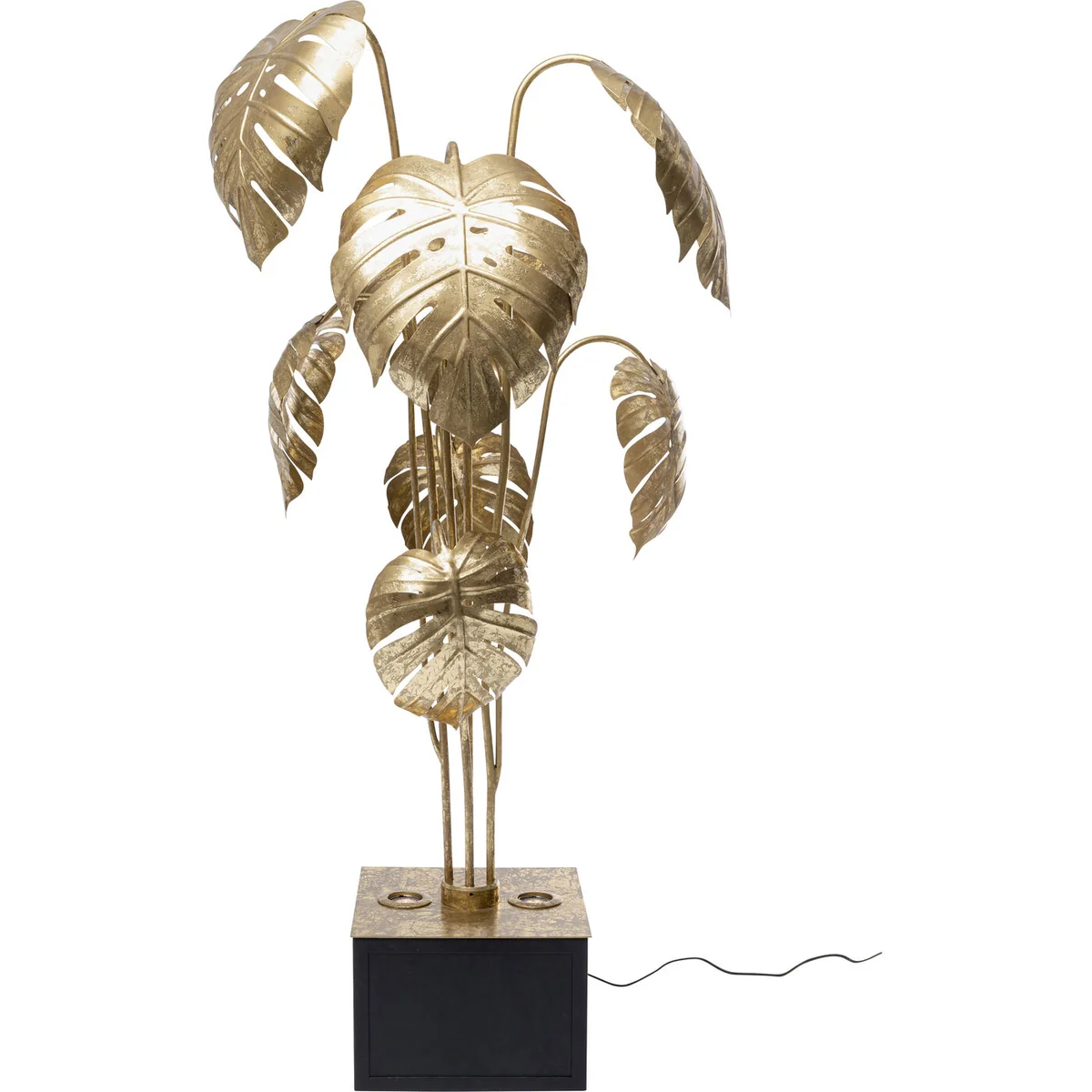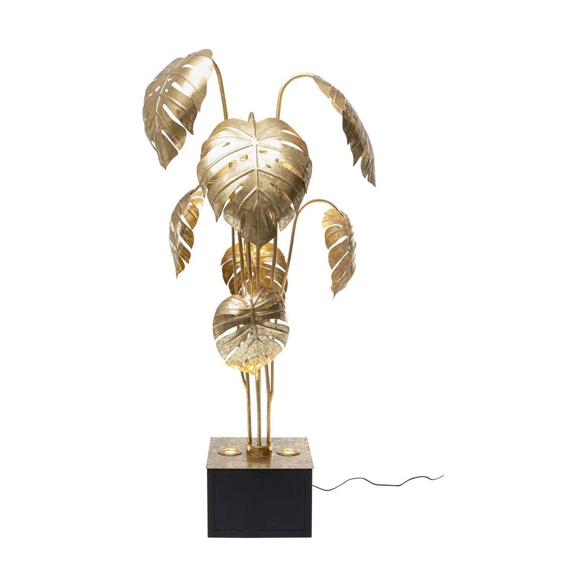 - Spectacular, golden floor lamp made of metal 149x73x63 cm (H/W/D) - Looks like a golden houseplant, but is a sophisticated lighting object - Two LED lights illuminate the leaves from below - The lamp looks like a show-piece anywhere, not just in the living room Bulbs - LED 2x GU10, 50/60 Hz, max. 10 W