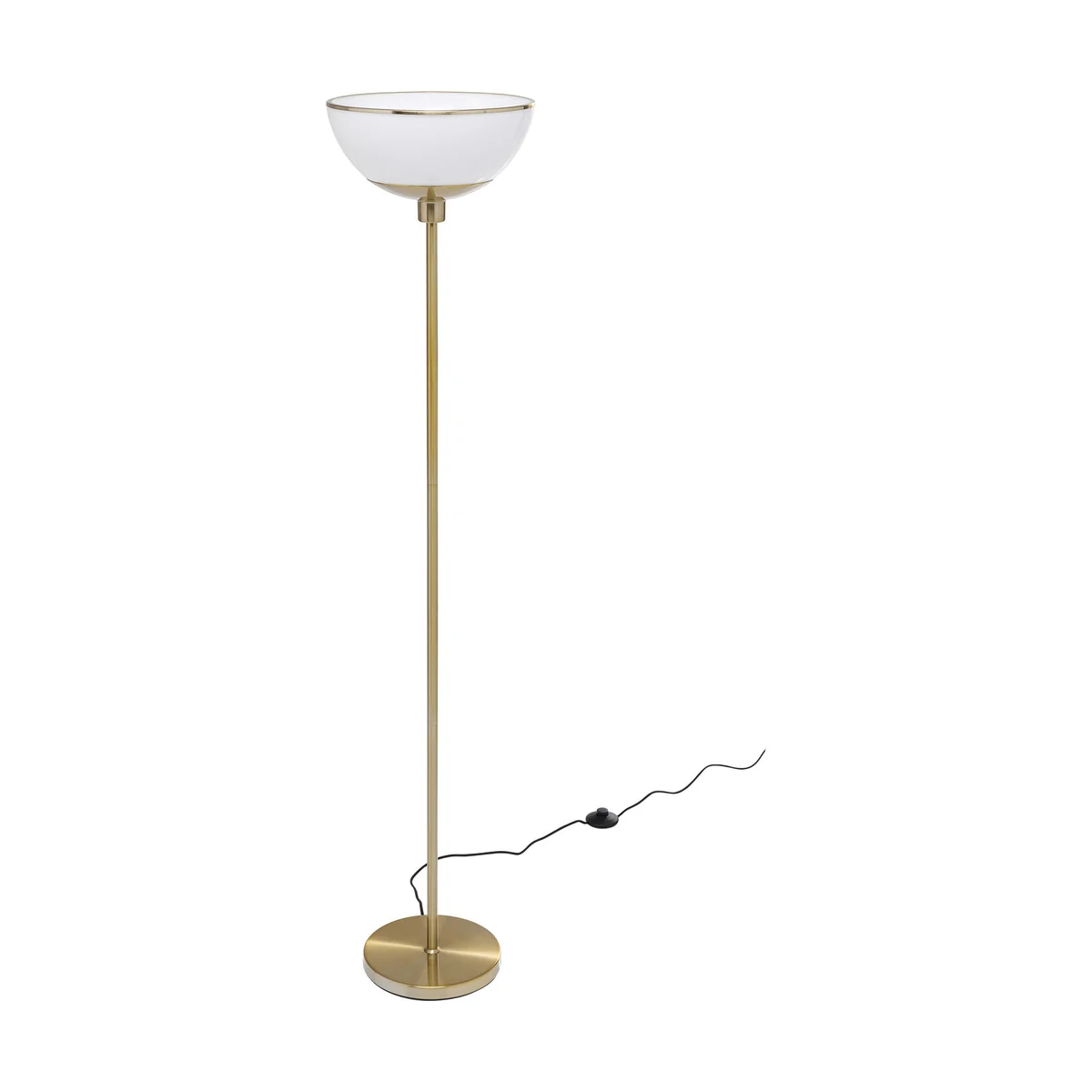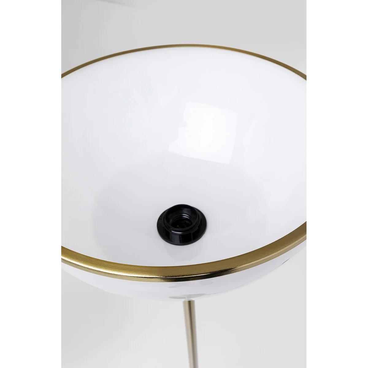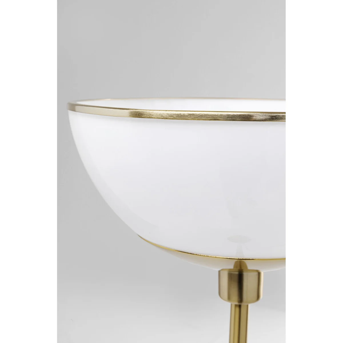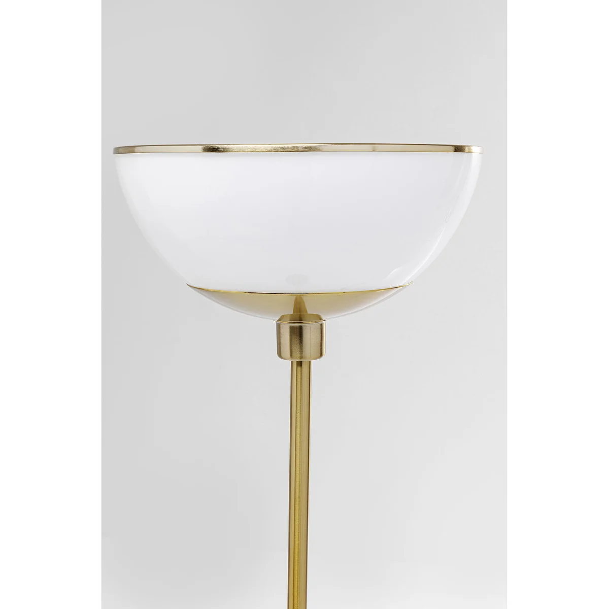 This floor lamp could be found in any luxury hotel, so refined and timelessly beautiful is its design. Its visual characteristics make it easy to integrate the large standard lamp into many styles of furnishing. Thanks to its simple shape it is modern. With the high-quality materials of metal, brass coating and white glass it will give your home an upscale look. Created in the Art Deco design tradition, it also brings a touch of the Golden Twenties into your own four walls. Bulb not included.