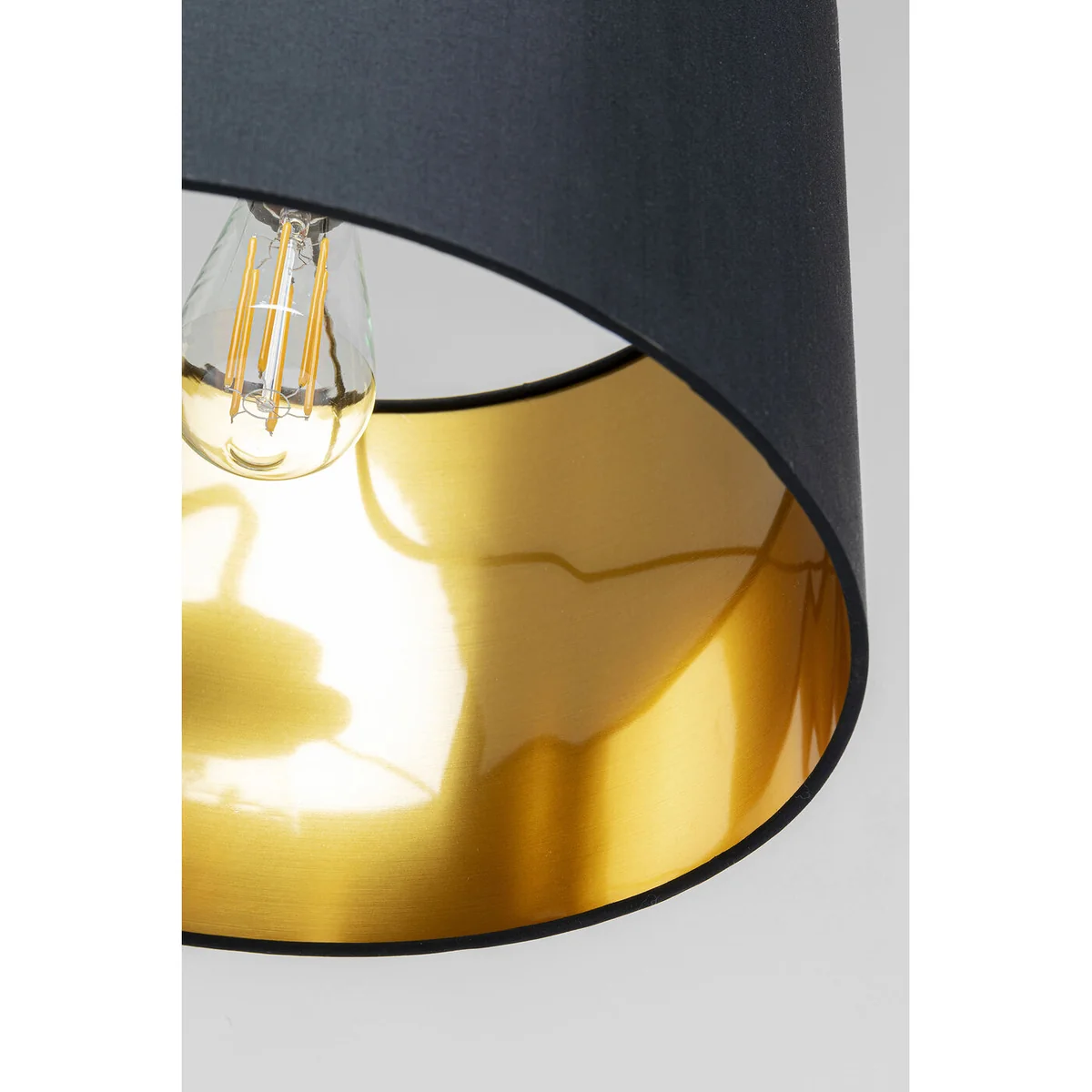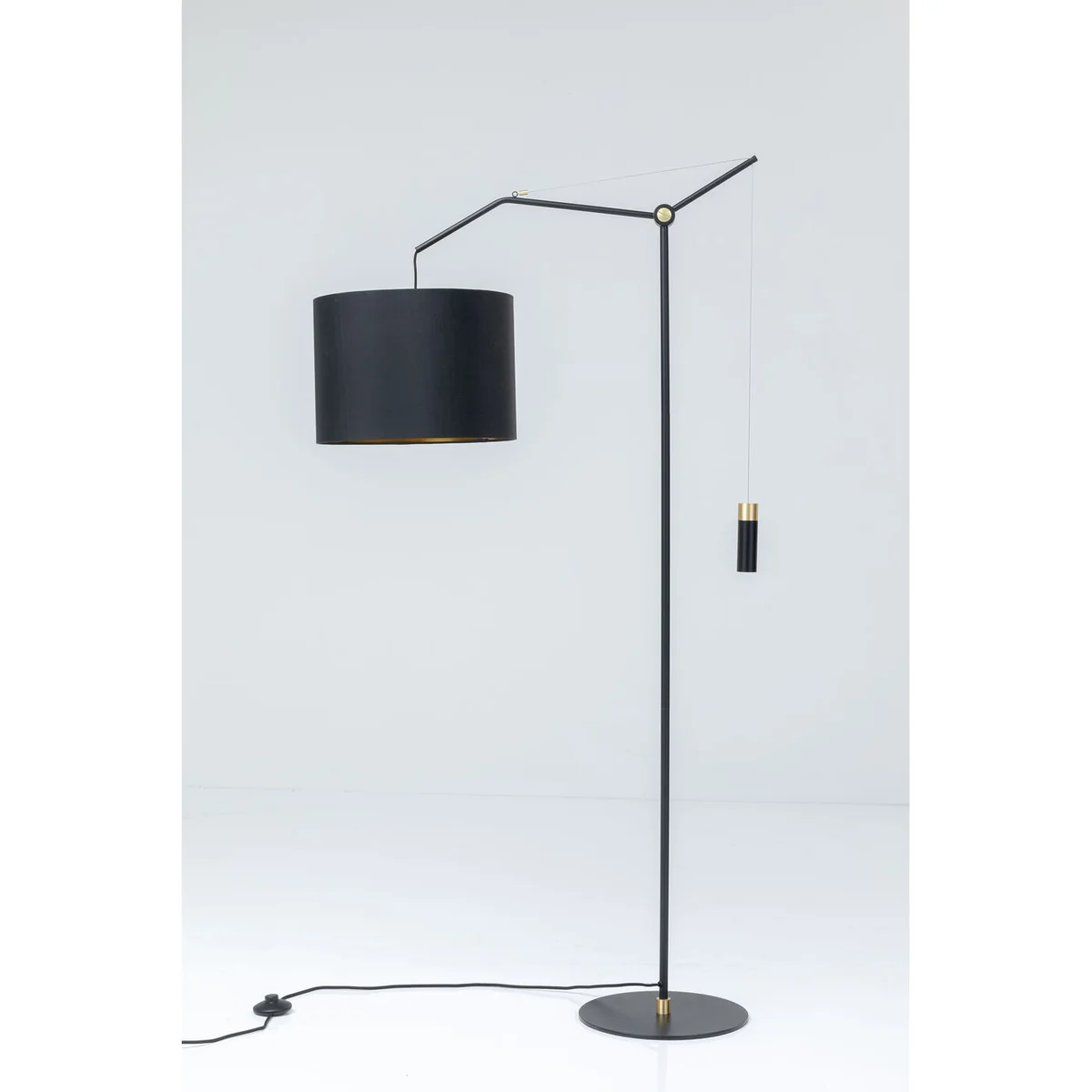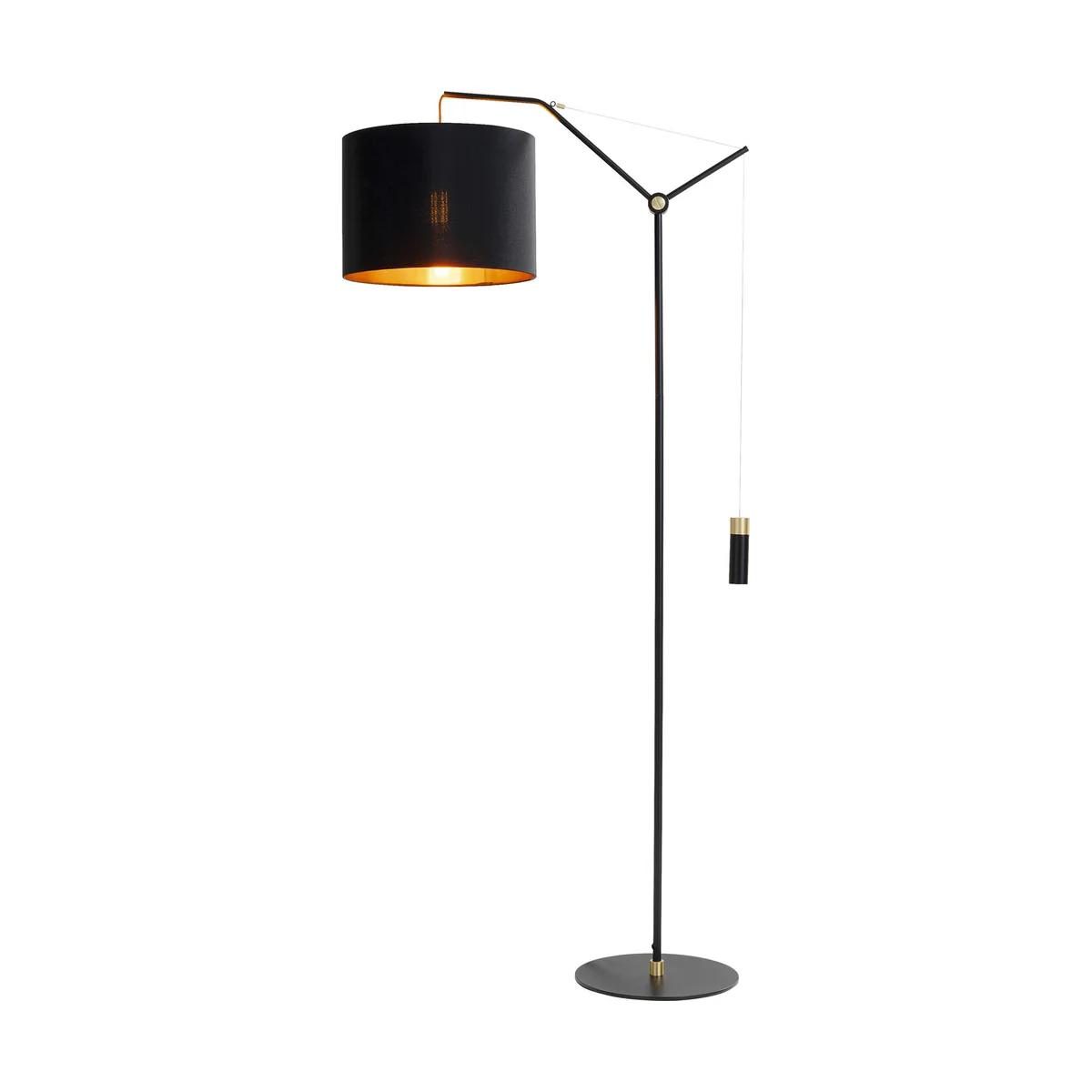 - Black designer lamp with a practical extra: the arm of the lampshade is height adjustable - A great mix of materials: a round lampshade in a fabric look, with a stand and base in black lacquered steel and discreet, brass-coloured design accents - Reading lamp, mood lighting and designer lamp, this large lamp has lots of functions to offer - A cosy feature: the lampshade, which is gold-coloured on the inside, provides a particularly warm light - Always looks more refined than plastic: the fabric-covered cable