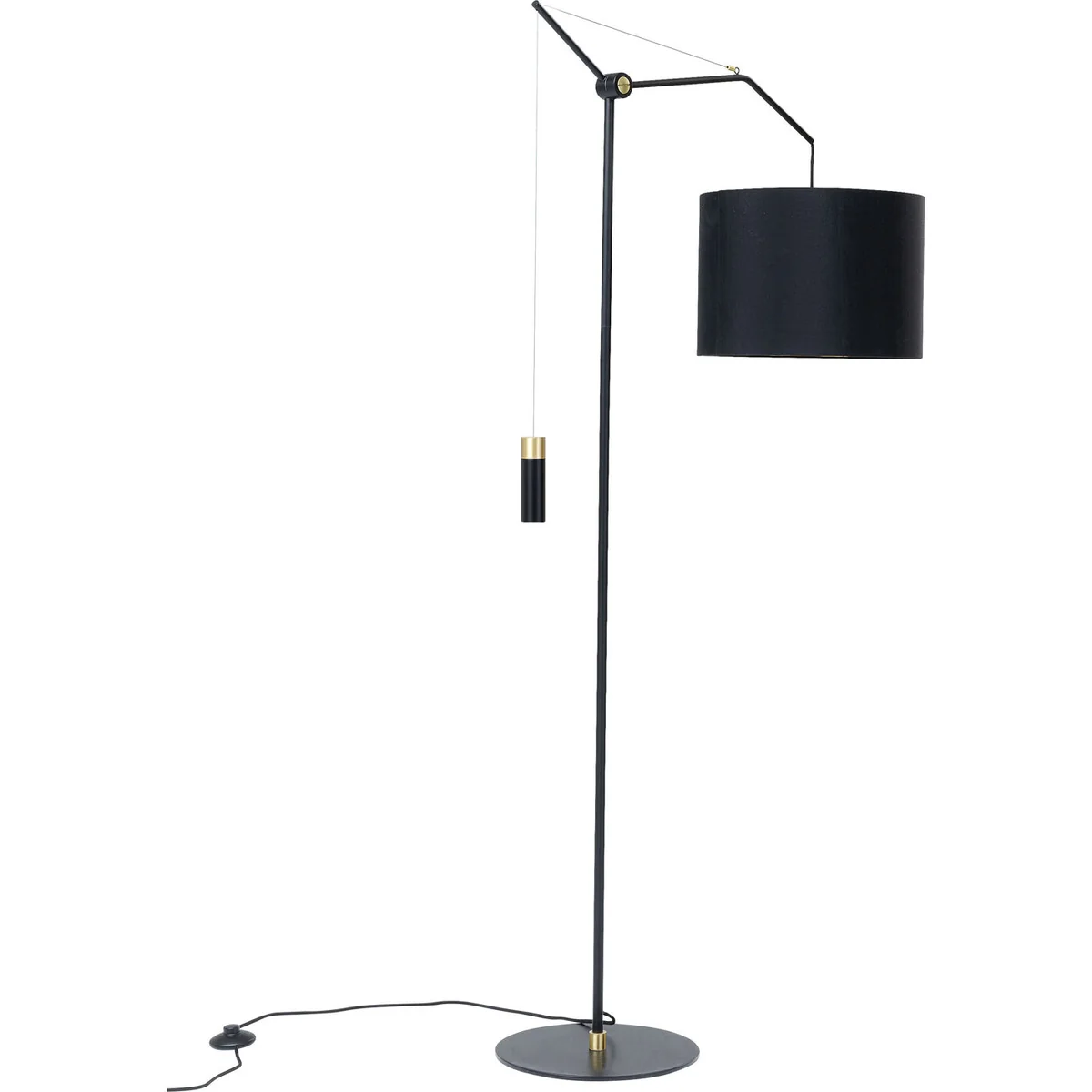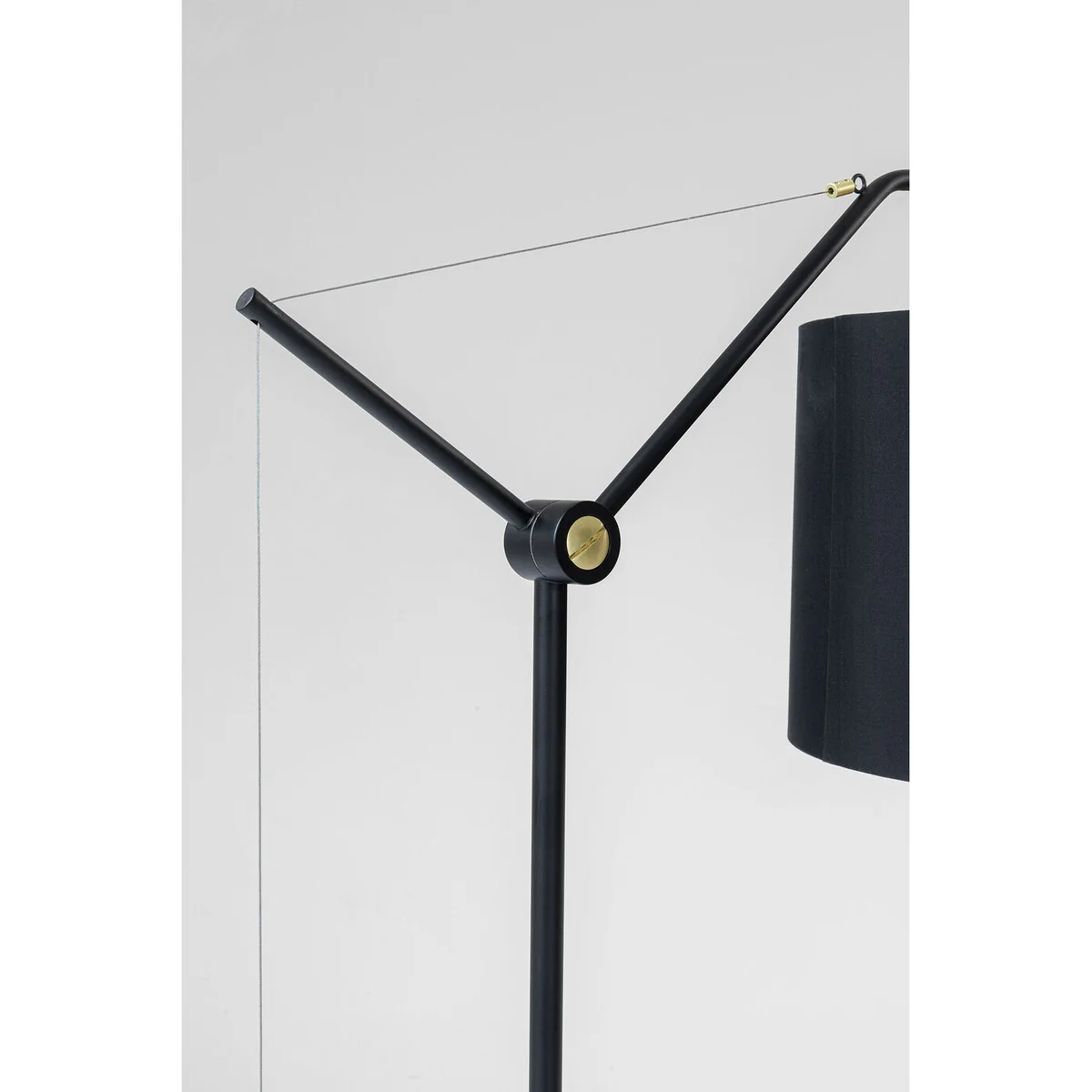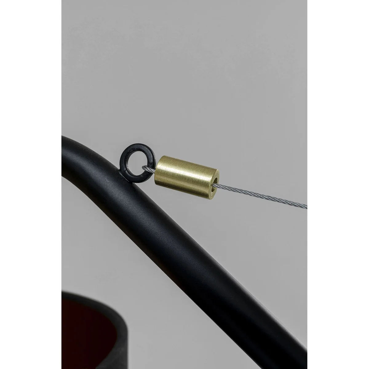- Black designer lamp with a practical extra: the arm of the lampshade is height adjustable - A great mix of materials: a round lampshade in a fabric look, with a stand and base in black lacquered steel and discreet, brass-coloured design accents - Reading lamp, mood lighting and designer lamp, this large lamp has lots of functions to offer - A cosy feature: the lampshade, which is gold-coloured on the inside, provides a particularly warm light - Always looks more refined than plastic: the fabric-covered cable