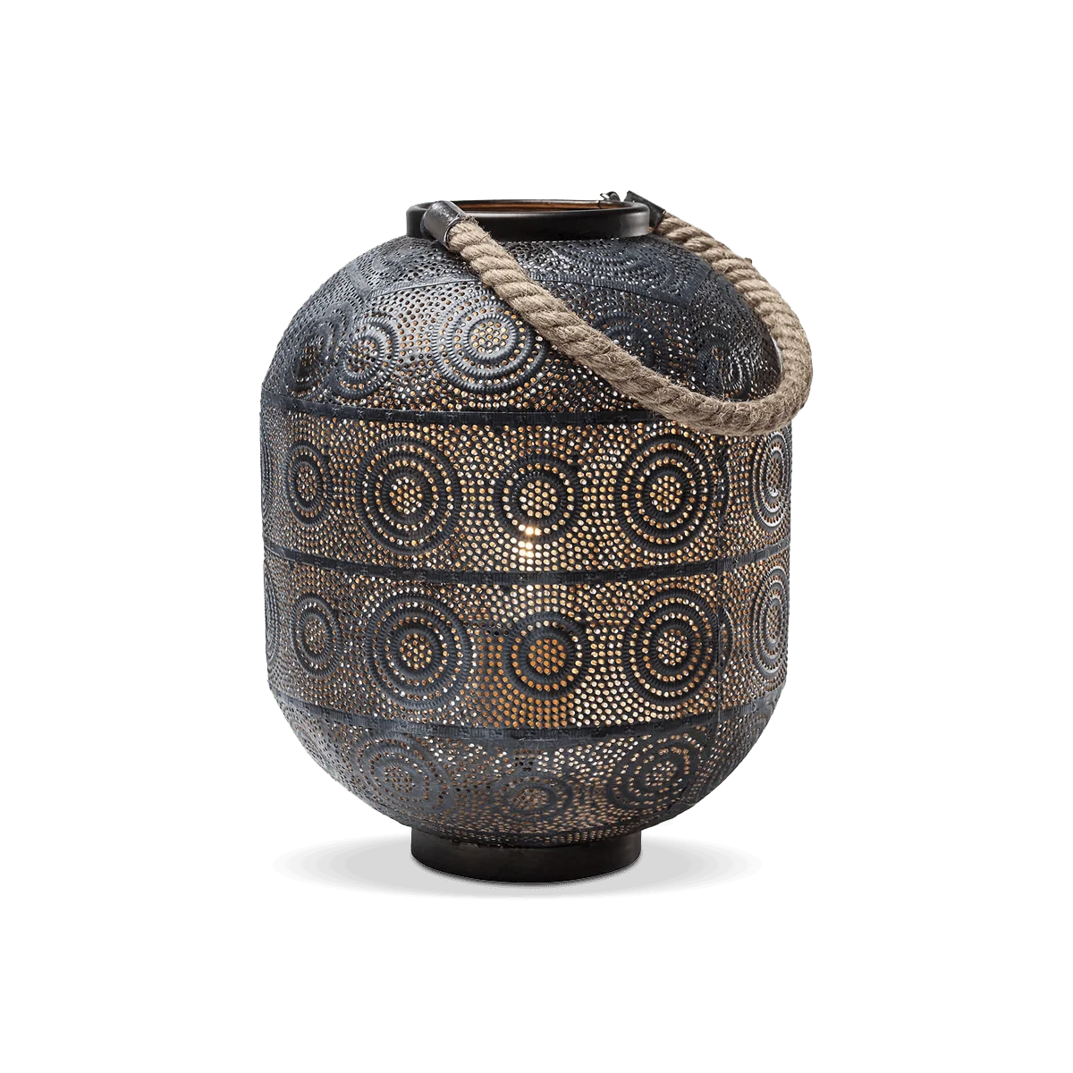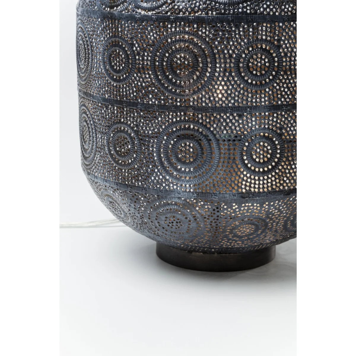 The oriental-style floor lamp conjures up a beautiful, iridescent play of light in the room. A perforated pattern blends into expressive ornaments that create a pleasant atmosphere. The design is based on that of a typical oriental lantern. With a height of 30 cm, this attractive lamp knows how to set the scene.