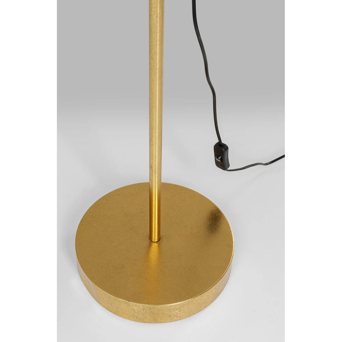 The key features of this lamp include a gold steel laminated design, total dimensions of L 44 cm | D 29.5 cm | H 160 cm, and the ability to add a warm, inviting glow to any space. The steel lamination ensures durability and longevity.