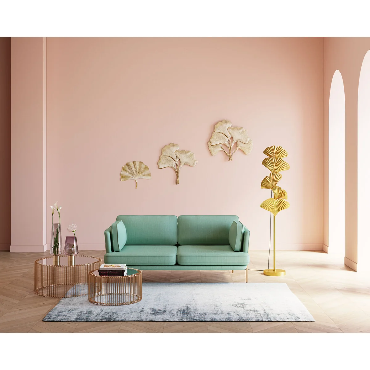 Illuminate your space with the Yuva Floor Lamp in gold steel lamination. This stylish floor lamp adds a modern touch to any room.