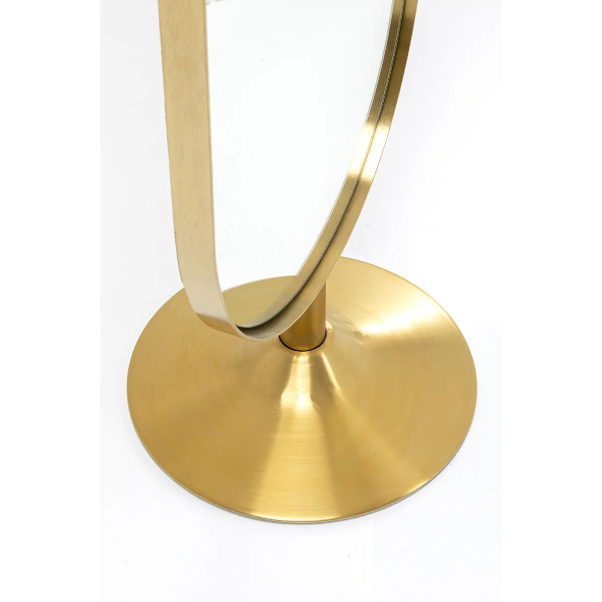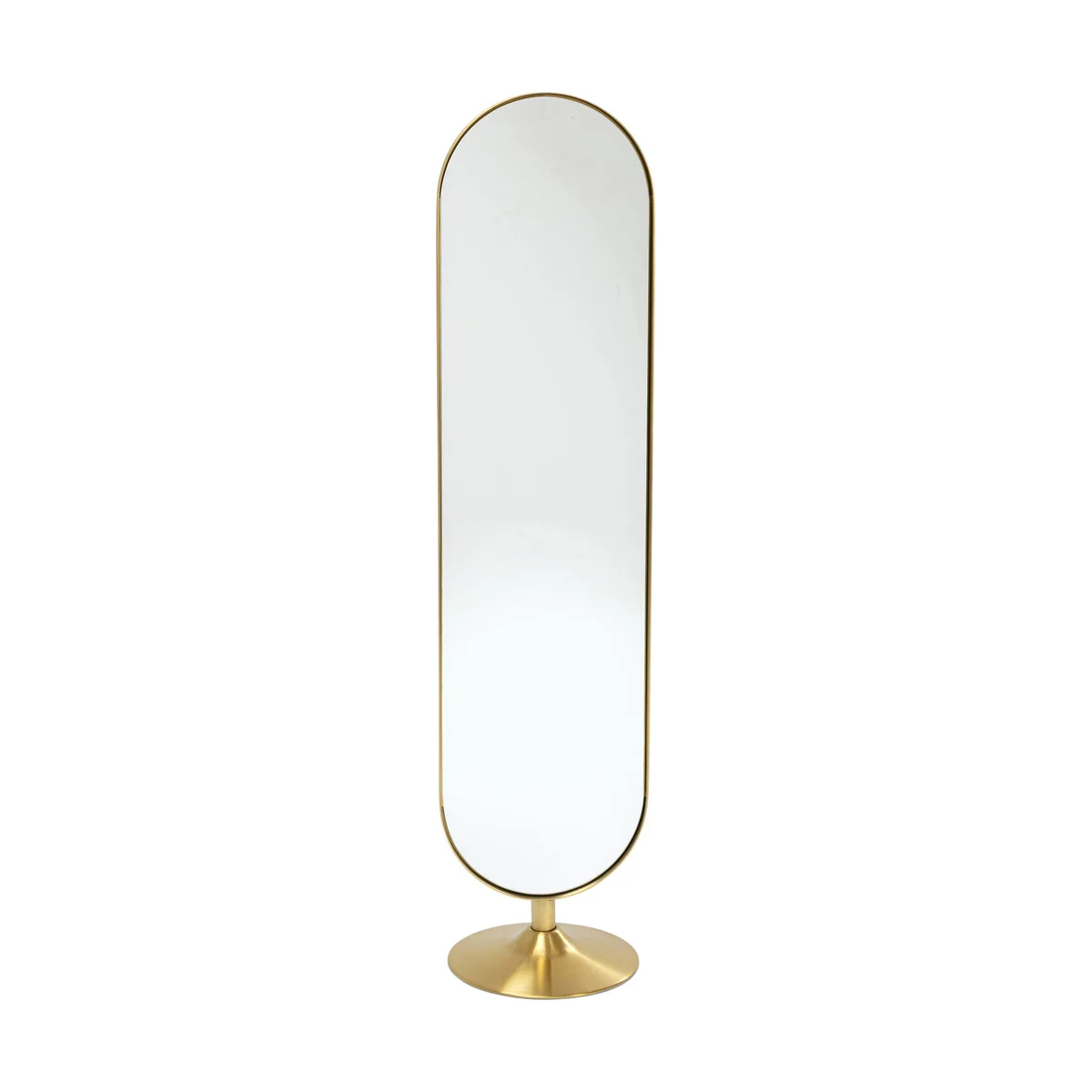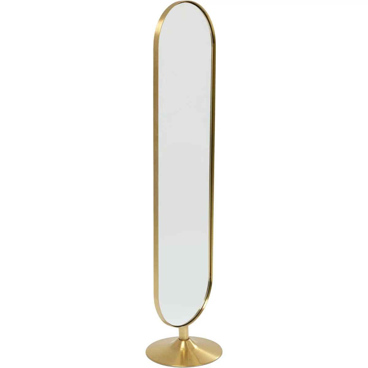 • A large, oval standing mirror with an elegant, brass-coated round base and frame • Just right for an outfit check in the bedroom - thanks to its slim shape it also fits in the corner next to the wardrobe • Heavy enough to provide stability, light enough to be move around in the home • This is how you make a hall cloakroom: Simply combine it with a wall-mounted coat rack and a velvety stool - job done! • Simply order, unpack and set up - this large mirror comes ready assembled. As a practical feature