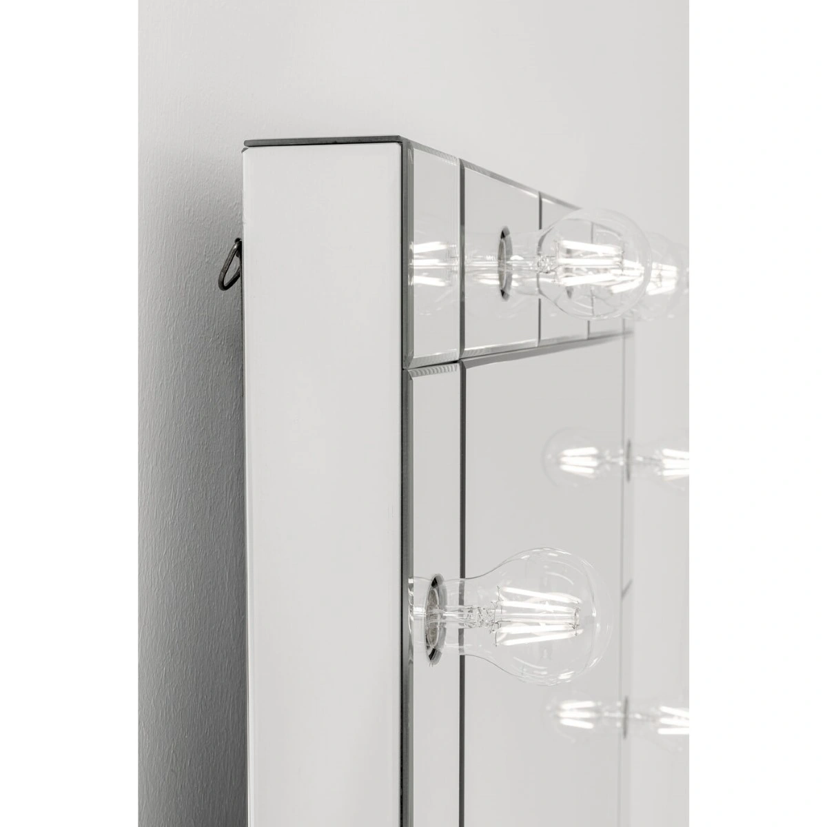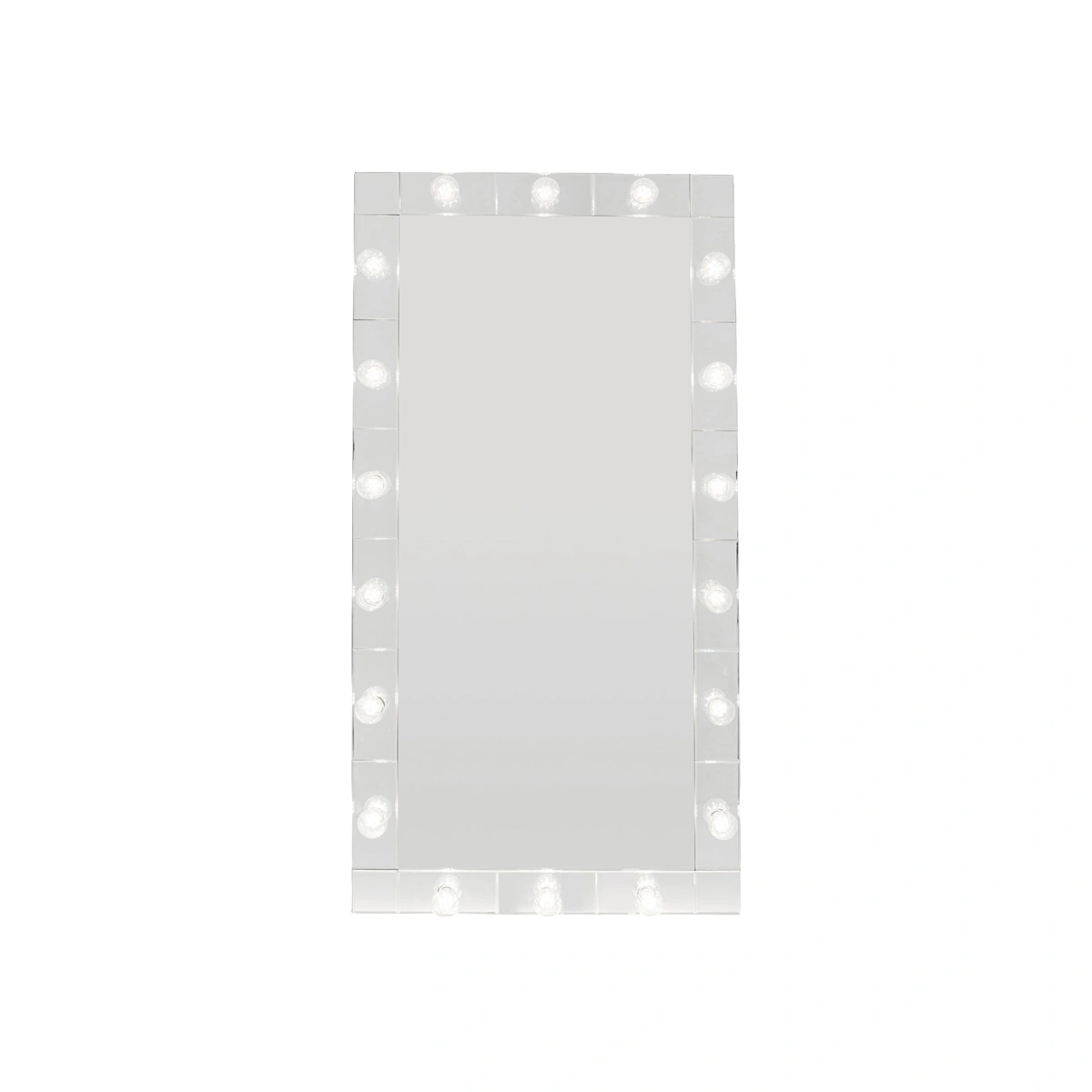 • Large, rectangular standing mirror with strips for light bulbs along all sides